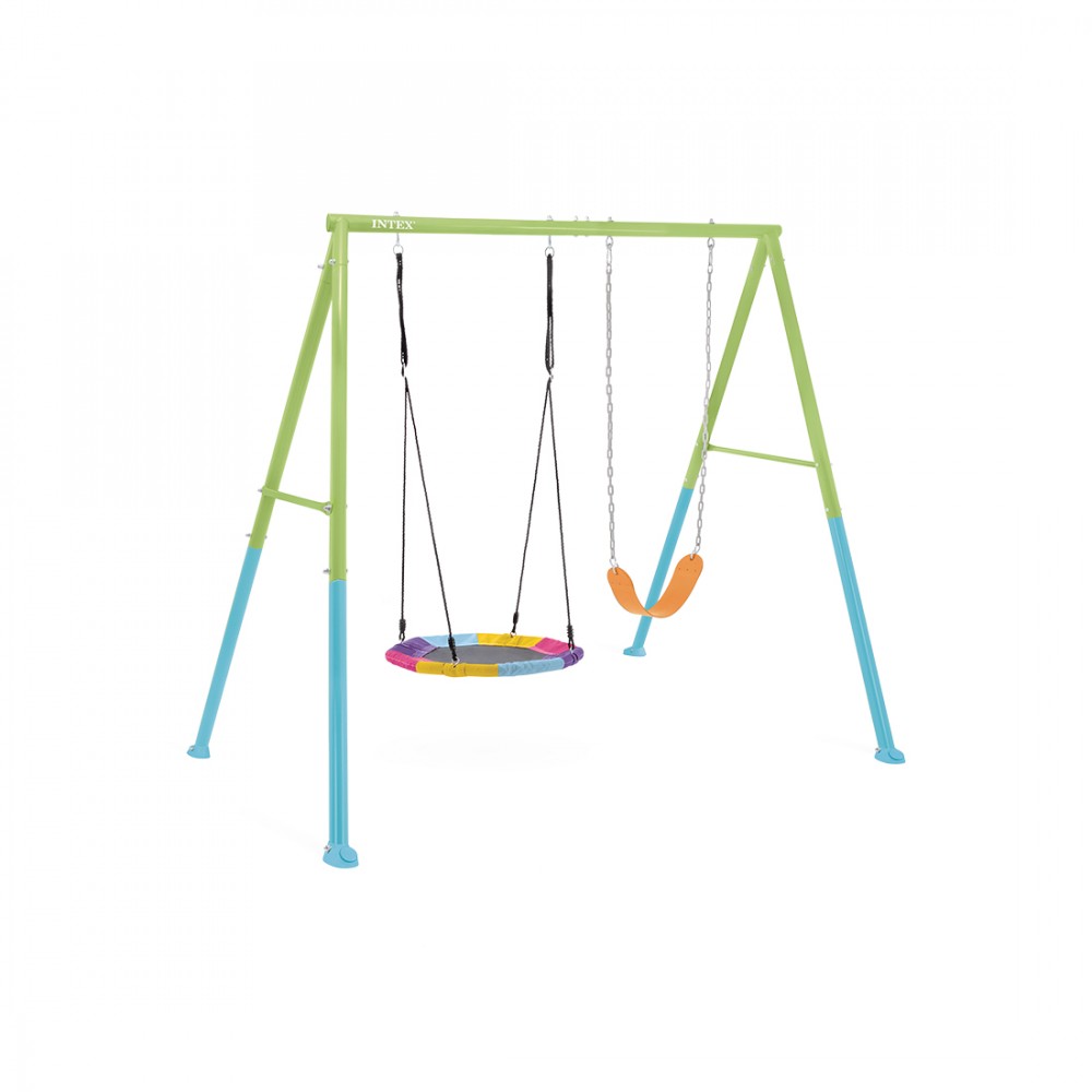 Качели детские, INTEX, 44125, Сталь/винил, 2в1 - качели и гнездо(до 100кг), 3-10 лет, 267x254x211см, Зелёная, Цветная коробка