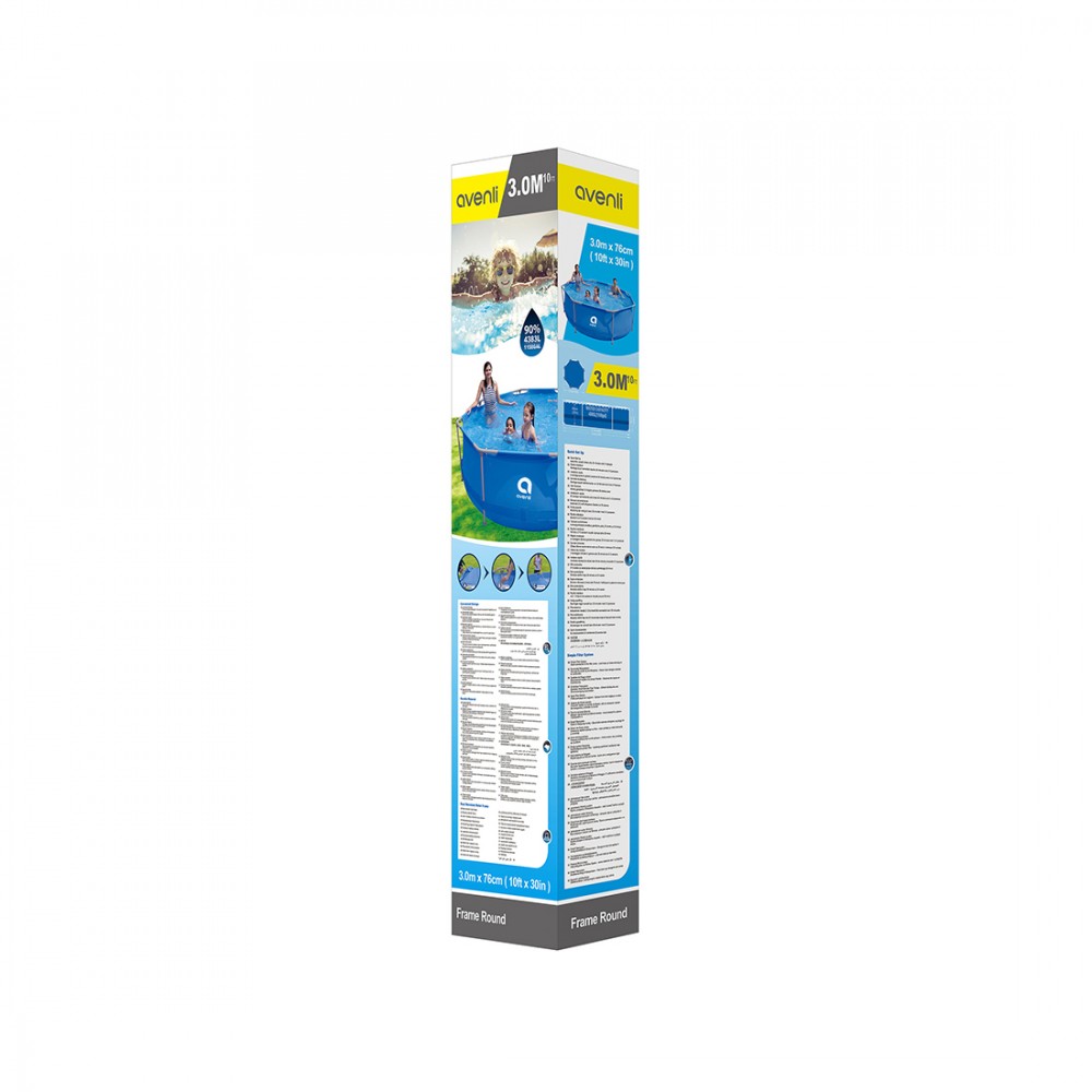 Каркасный бассейн 300 x 76 см, Avenli, 17798, Винил, 4383 л., Стальной каркас, Голубой, Цветная коробка
