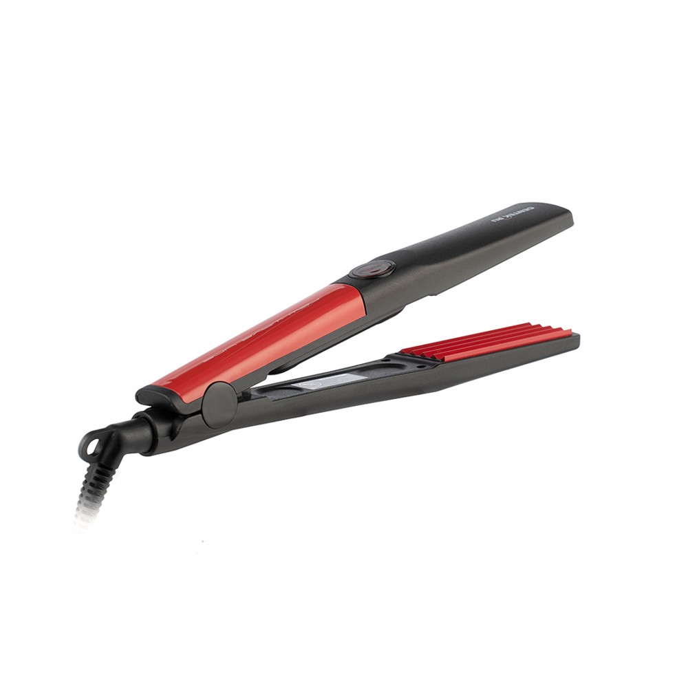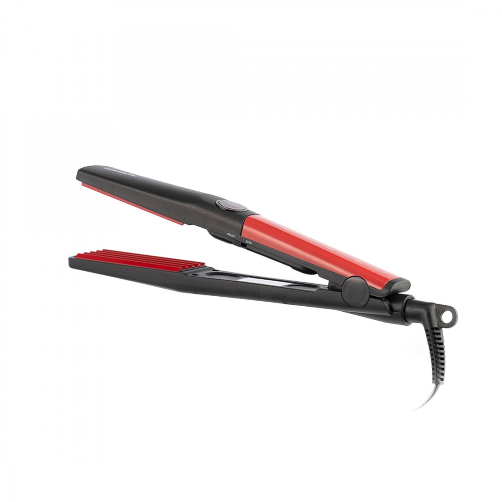 Выпрямитель для волос, Centek, CT-2027, 46W, Гофре, Керамическое покрытие, Пластина 89х31мм, LED, Черный-красный