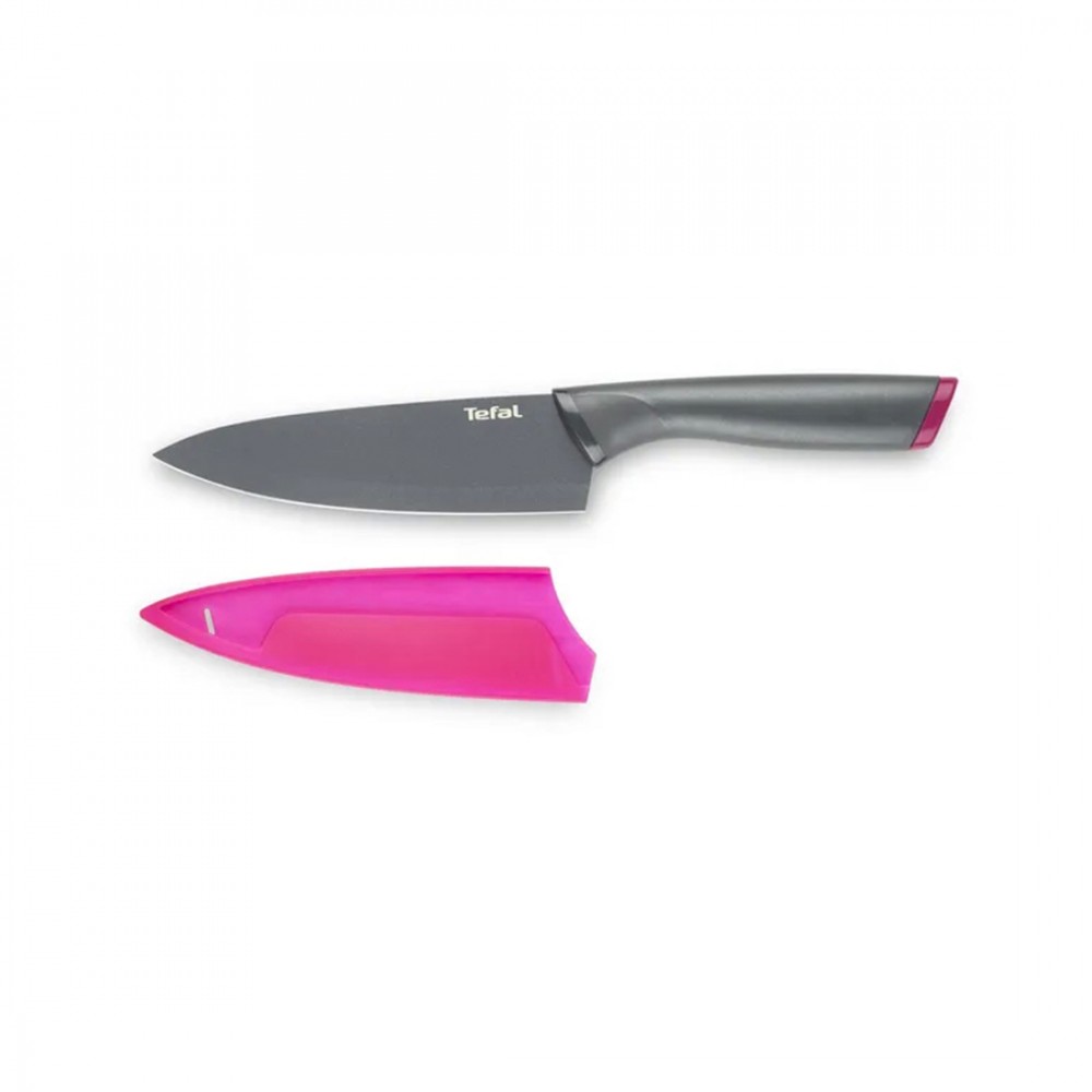 Нож-шеф, Tefal, Fresh Kitchen K1220304, 15см, Нержавеющая сталь с титановым покрытием, Чехол, Серый-розовый