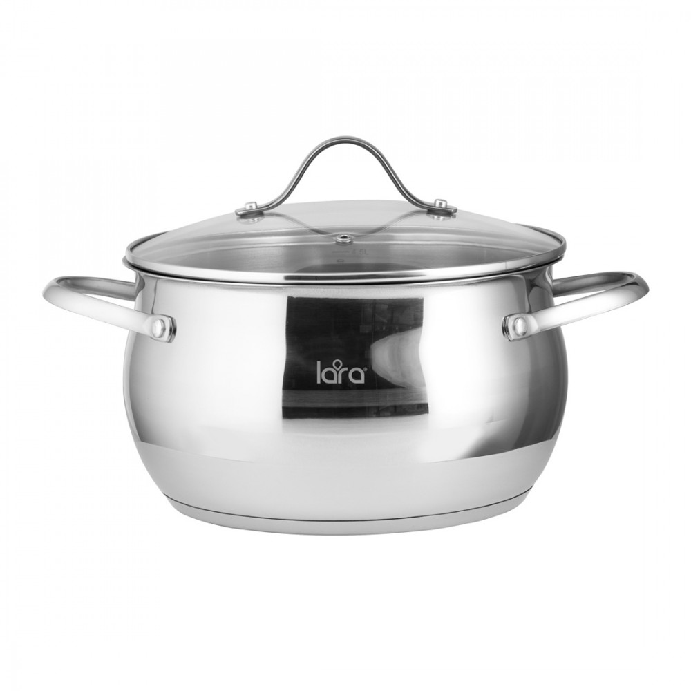 Кастрюля, LARA, APPLE LR02-31, Диаметр 16 см,Высота 10 см, Объем 2.1л, Нержавеющая сталь/Стекло, Для всех типов плит, Мойка ручная/в посудомоечной машине, Стальной