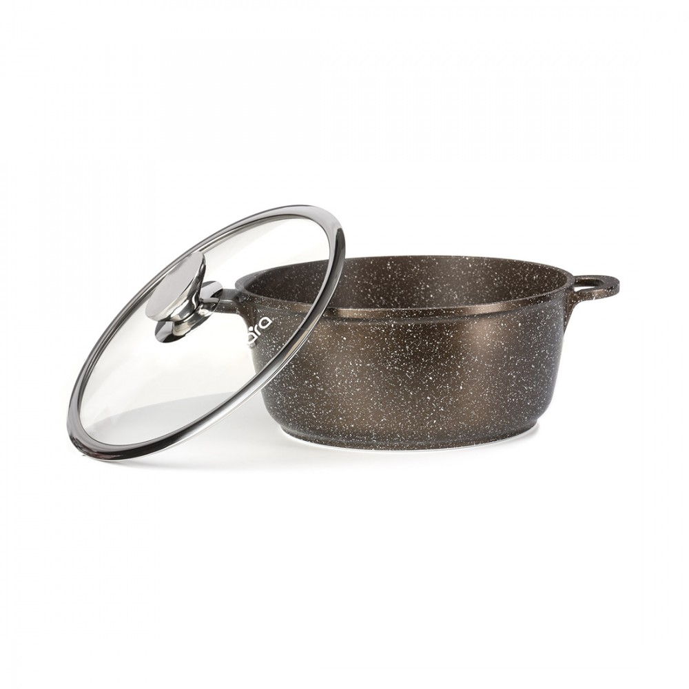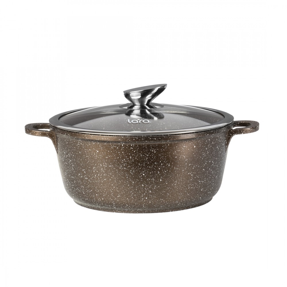 Кастрюля, LARA, CHOCO LR02-203, Диаметр 22 см, Высота 10 см, Объем 3.1л, Литой алюминий/Нержавеющая сталь/Стекло, Для всех типов плит, Мойка ручная/в посудомоечной машине, Коричневый