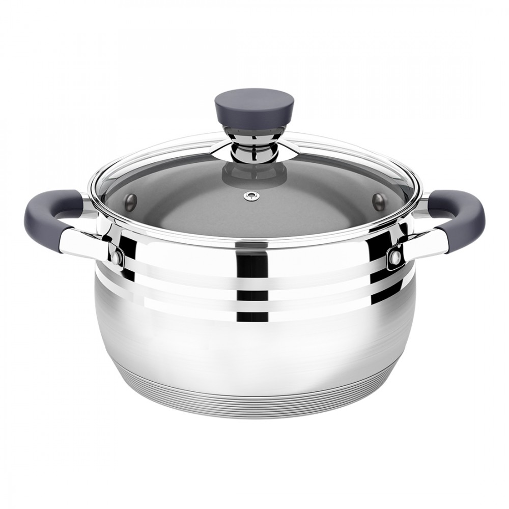 Кастрюля, LARA, MERCURY LR02-471, Диаметр 18 см,Высота 11.5 см, Объем 2.9л, Нержавеющая сталь/Стекло, Для всех типов плит, Мойка ручная/в посудомоечной машине, Стальной