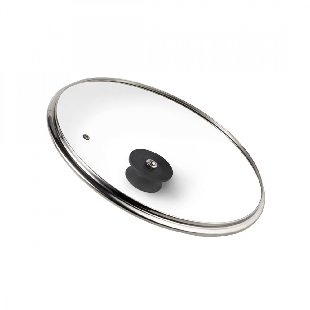 Крышка, LARA, LR01-97, Диаметр 24см, Нержавеющая сталь/Пластмасса/Стекло, Черный