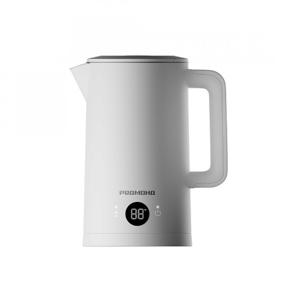 Чайник электрический, Редмонд, KM245, Объем 1.7л, Двойные стенки, Сенсорное управление, 5 температурных режимов, Дисплей, Поддержание температуры, Нержавеющая сталь, Мощность 1850-2200 Вт, Длина шнура 0.7м, Белый