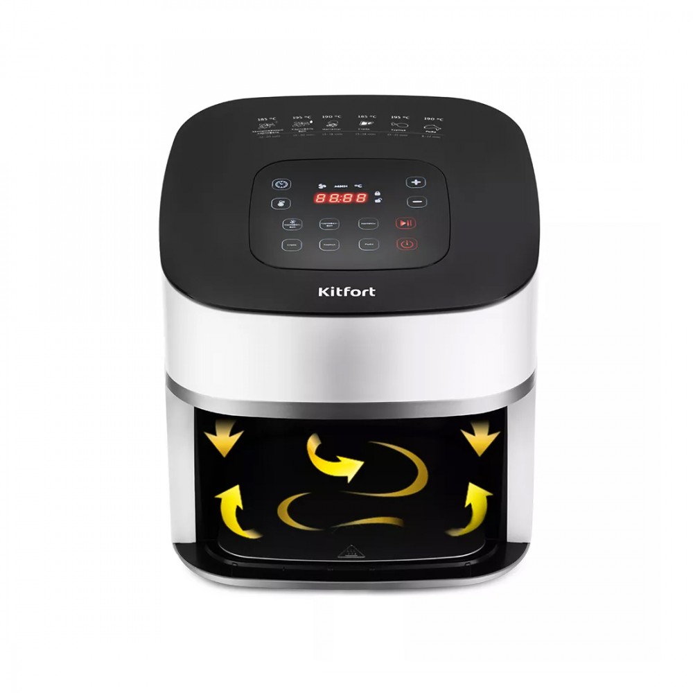 Аэрогриль, Kitfort, КТ-2217, Мощность 1500 Вт, Объем чаши 4.5 л, Сенсорное управление, Количество автоматических программ 6, Максимальная температура нагрева 200 °C, Цвет белый