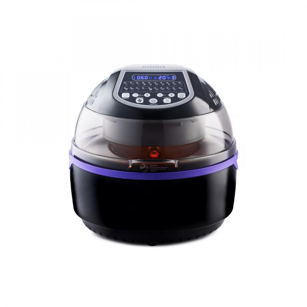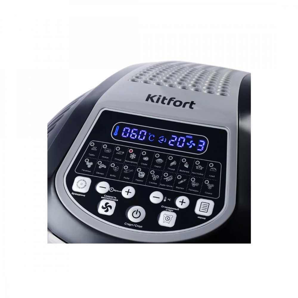 Аэрогриль, Kitfort, КТ-2219-1 черный, Объём 8 л, Крышка на кронштейне, Электронное управление, 20 автоматических программ, Таймер, Отложенный старт, Черный