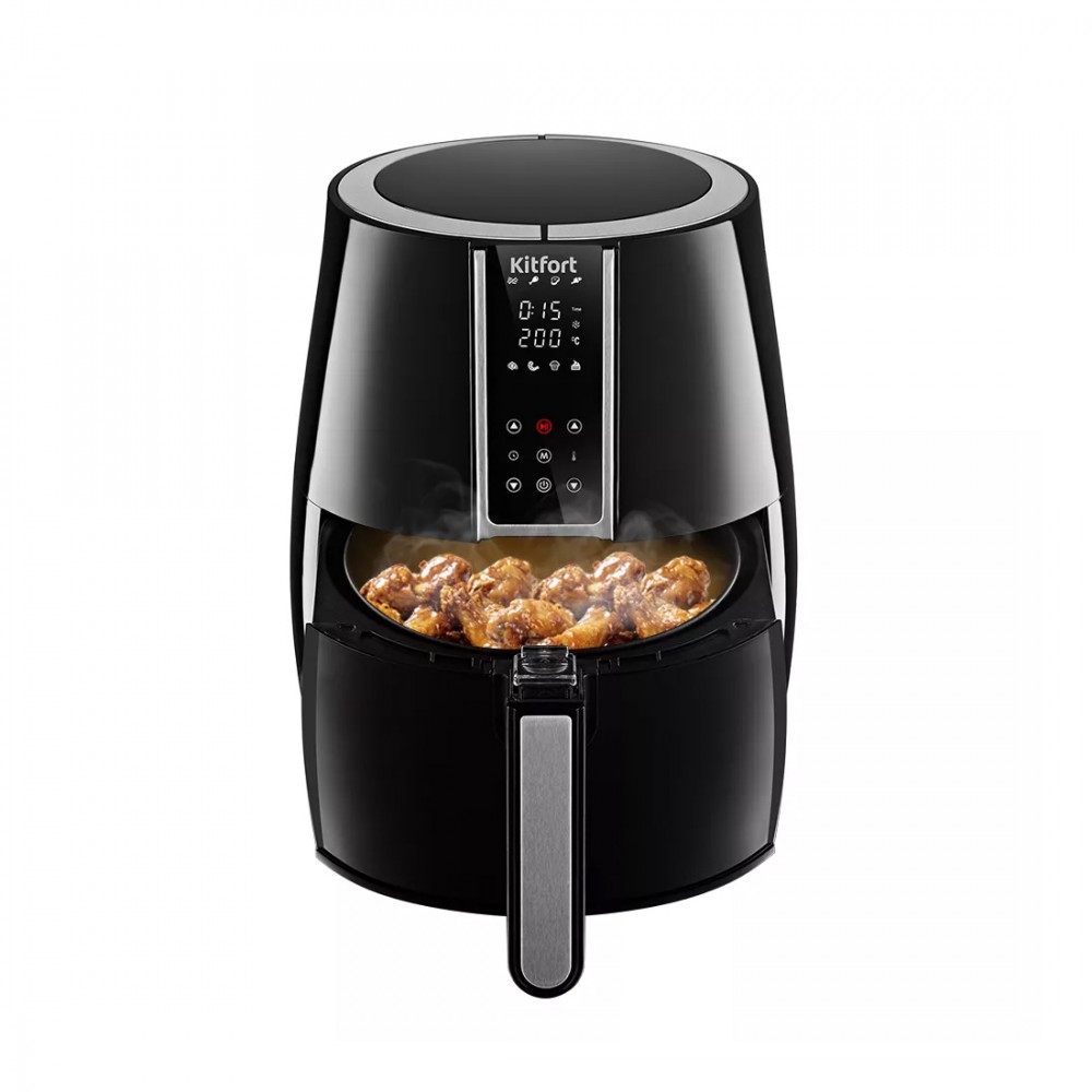 Аэрогриль, Kitfort, КТ-2227, Сенсорное управление, 3.5л, 8 программ, Температура нагрева 70-200°C, Таймер 60 мин, Съемная крышка, Длина шнура 0.9м, Мощность 1500 Вт, Чёрный
