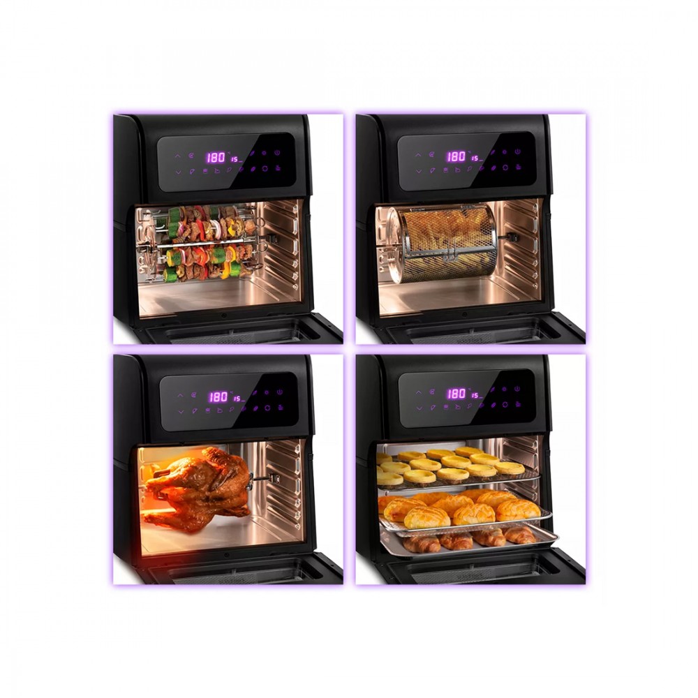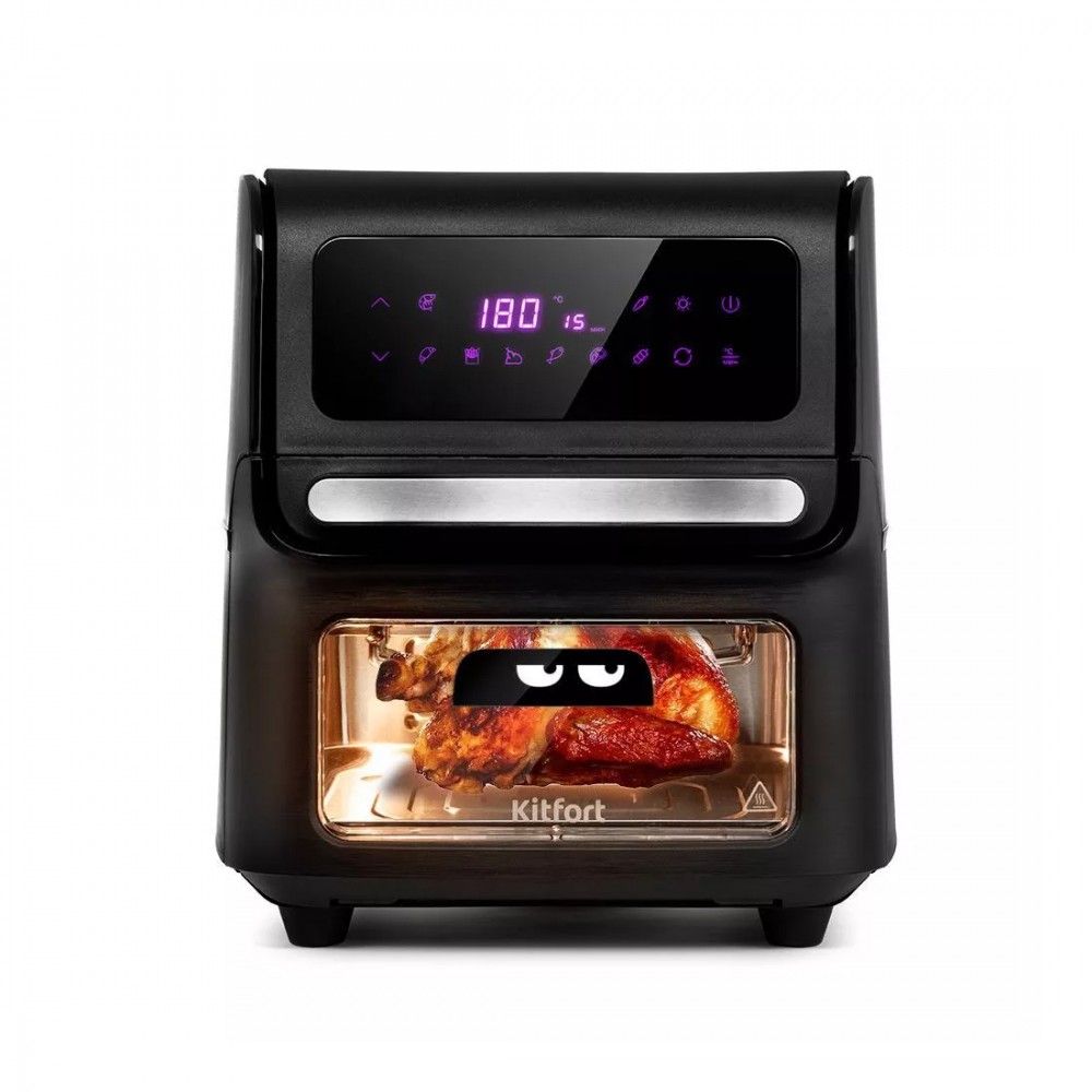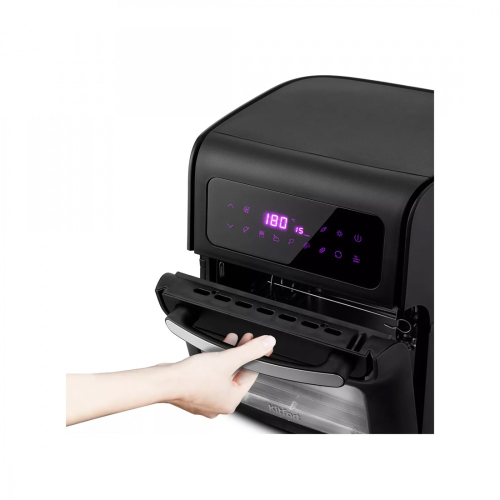 Аэрогриль, Kitfort, КТ-2236, «3 в 1», Объем 15 л, 8 программ, Сушилка для овощей и фруктов, Температура нагрева 75-200°C, Сенсорное управление, Таймер, Мощность 1800 Вт, Длина шнура 1м, Черный