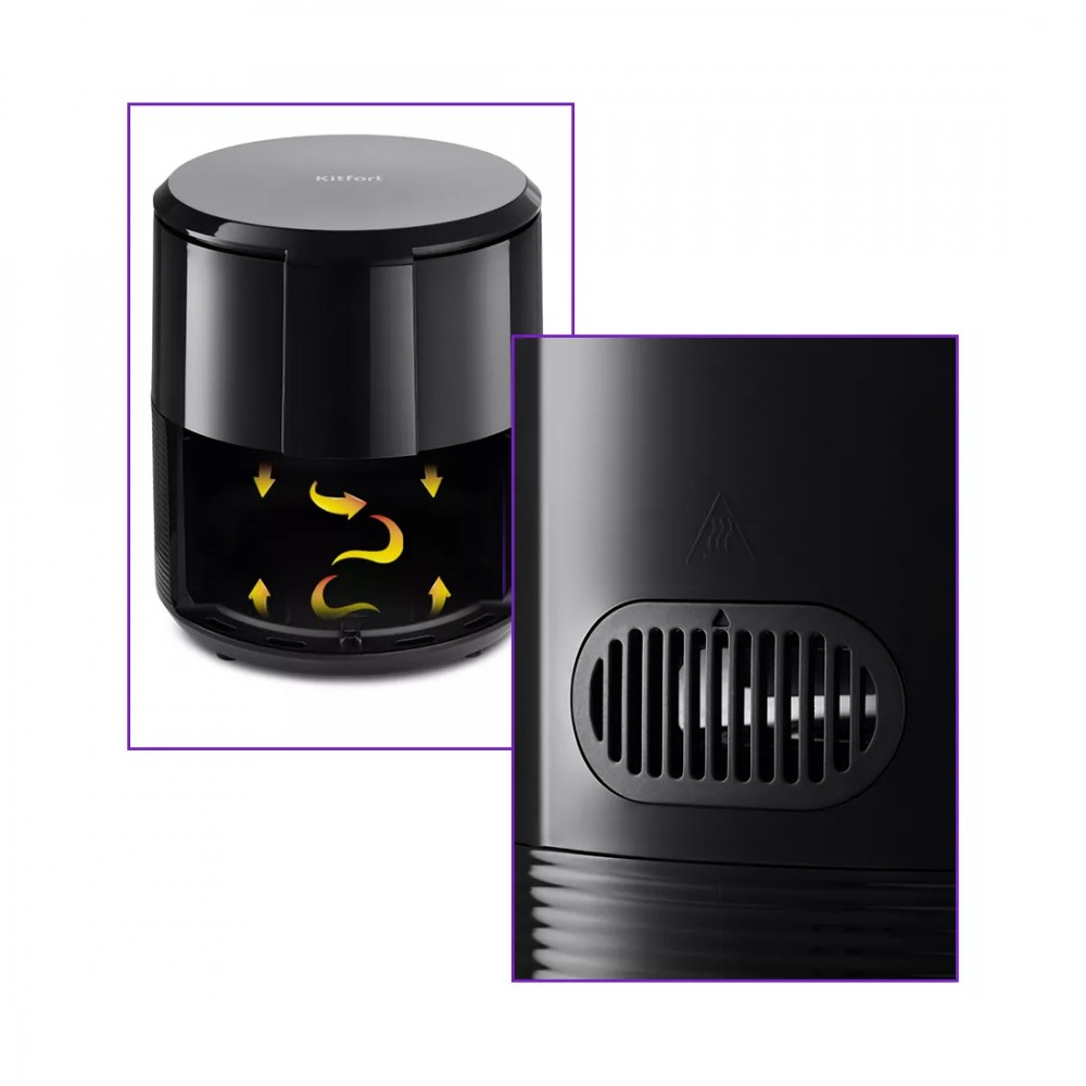 Аэрогриль, Kitfort, КТ-2237, Мощность 1300 Вт, Объём 3 л, Количество программ приготовления 8 , Сенсорное управление, Цвет черный