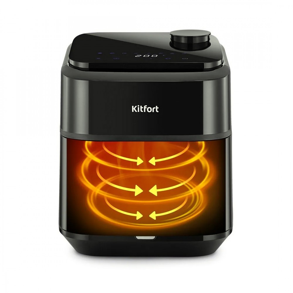 Аэрогриль, Kitfort, КТ-8154, Объем корзины 6.5л, 8 автоматических программ, Режим пара, Температура нагрева 80-200°C, Таймер, Сенсорное управление, Мощность 1800 Вт, Длина шнура 0.6 м, Черный