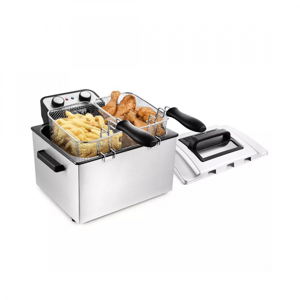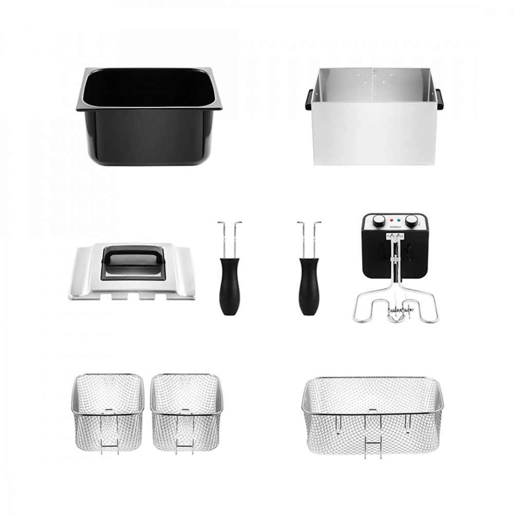 Фритюрница, Kitfort, КТ-2025, 3 корзины, Объем чаши 10 л, Объем корзин 2/4.7л, Длина шнура 0.93 м, Мощность 3270 Вт, Стальной