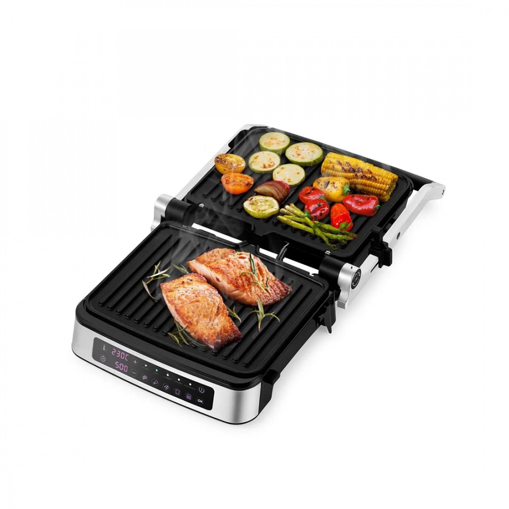 Электрогриль, Kitfort, КТ-1687, Мощность 2000 Вт , Антипригарное покрытие, Таймер, Режим барбекю 180°, Съемные панели, Цвет черный