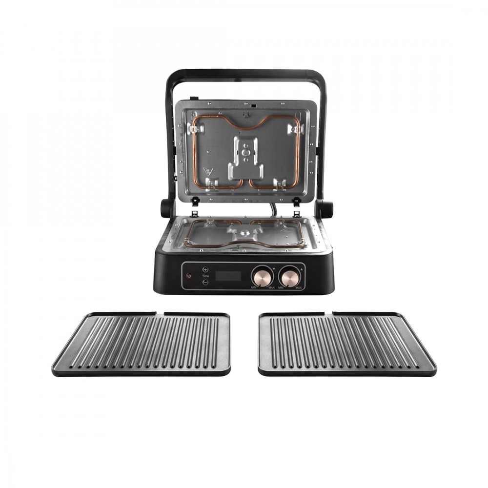 Гриль, Redmond, SteakMaster RGM-M817D, Мощность 2000 Вт, ЖК дисплей, Съемные панели, Диапазон температур 90-230°С, Угол открытия крышки 180°, Черный/сталь