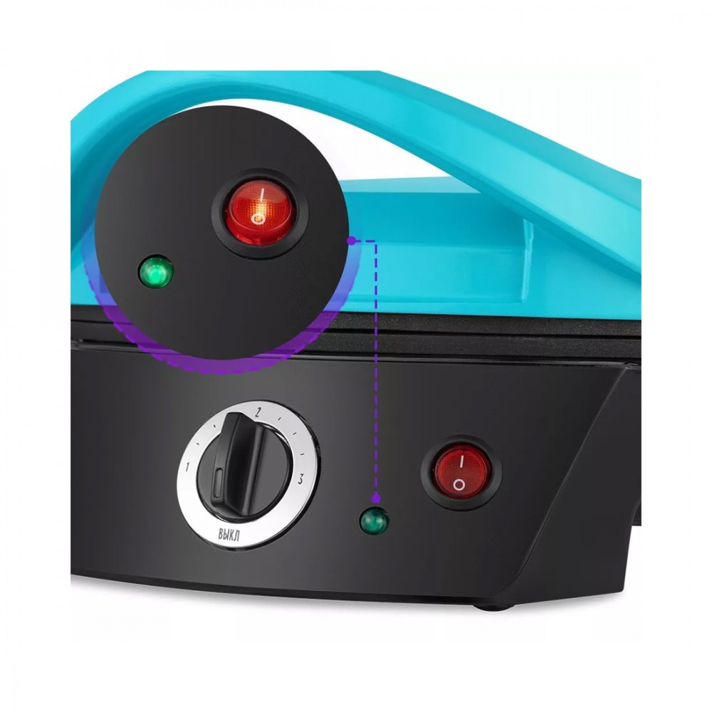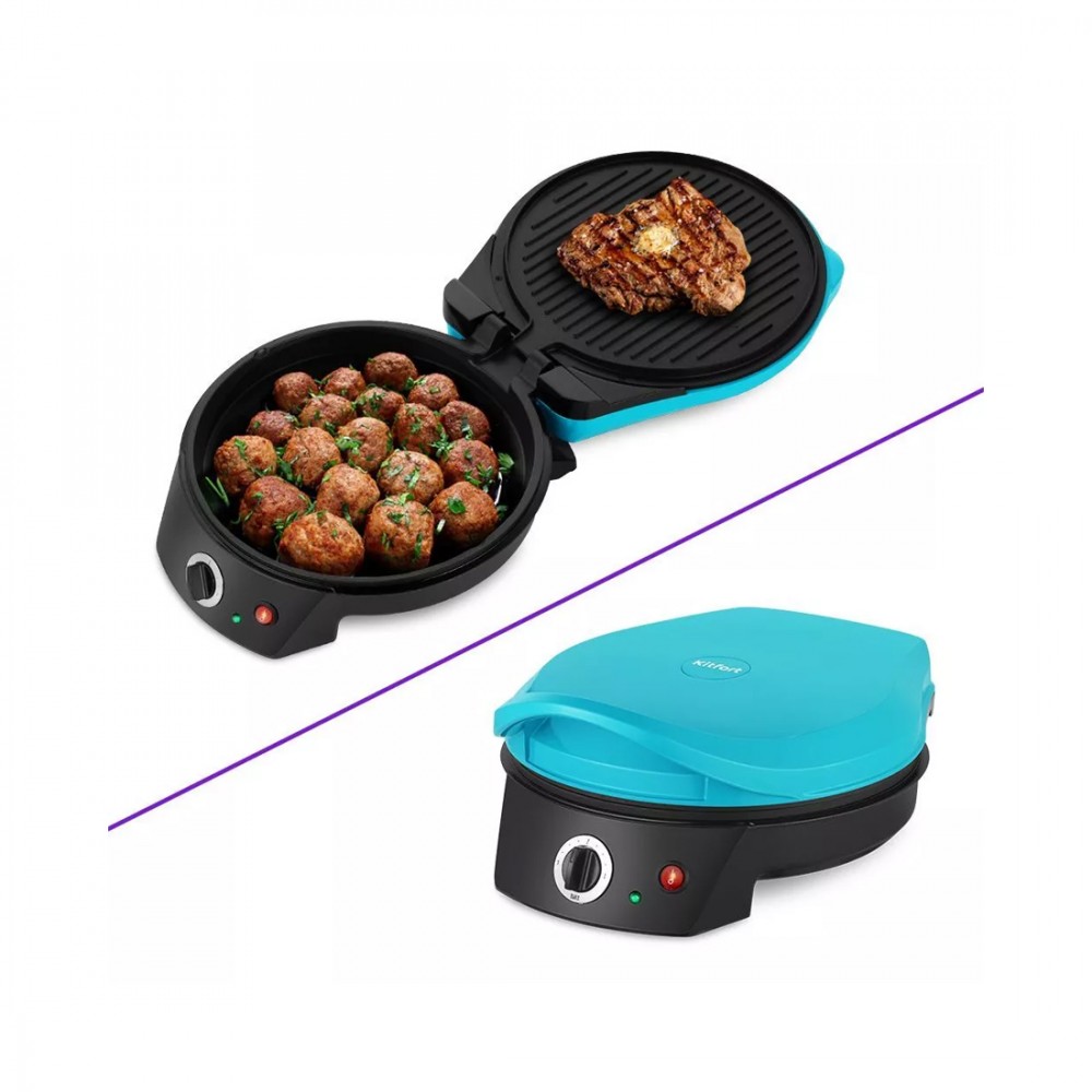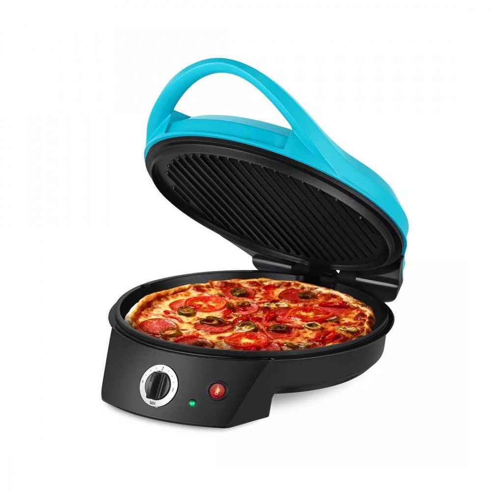 Пиццамейкер, Kitfort, КТ-3689, Количество видов панелей 1 шт, Формы пицца, Антипригарное покрытие, Размер пластин 28 см, Индикатор работы / готовности визуальный, Открытие на 180°, Терморегулятор , Голубой/черный