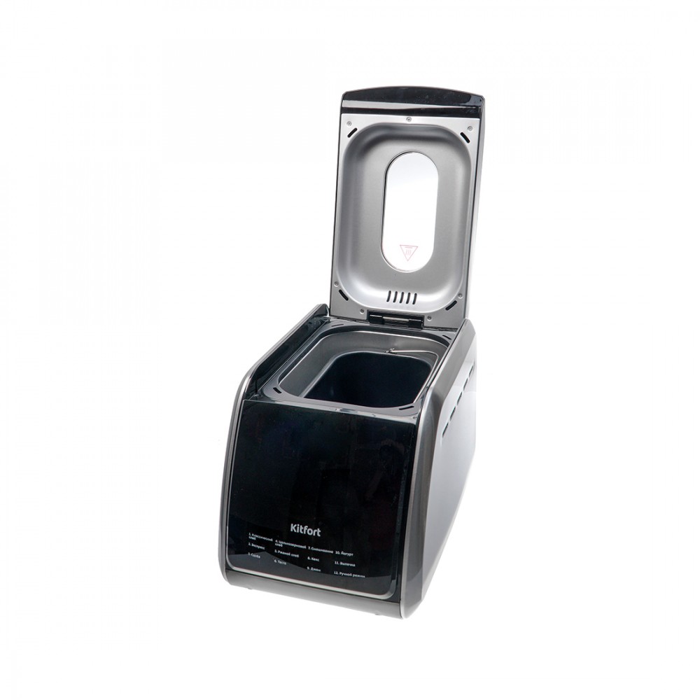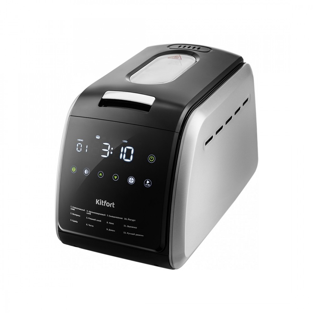 Хлебопечь, Kitfort, КТ-305, Мощность 850 Вт, Тип управления электронное, Автоматические программы 12 шт, Материал корпуса пластик и нержавеющая сталь, Ёмкость чаши 3,5 л, Цвет черный