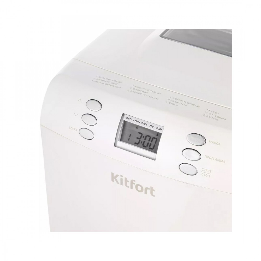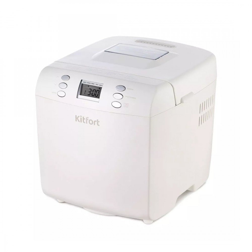 Хлебопечь, Kitfort, КТ-311, Мощность 550 Вт, Съемная чаша есть, Максимальный вес выпечки 0.9 кг, Регулировка веса выпечки есть,Размер выпечки 700 г, 900 г, Форма выпечки буханка, Цвет Белый