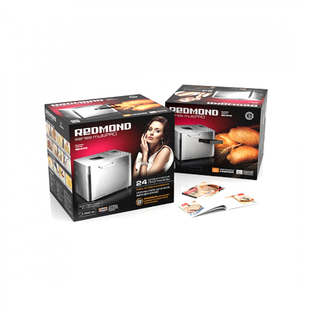 Хлебопечь, Redmond, RBM-M1910,Мощность-550 Вт ,Количество программ-25 ,Пользовательский режим-есть ,Таймер-есть,Смотровое окно-есть, Напряжение-220-240 В, 50 Гц ,Материал корпуса-нержавеющая сталь