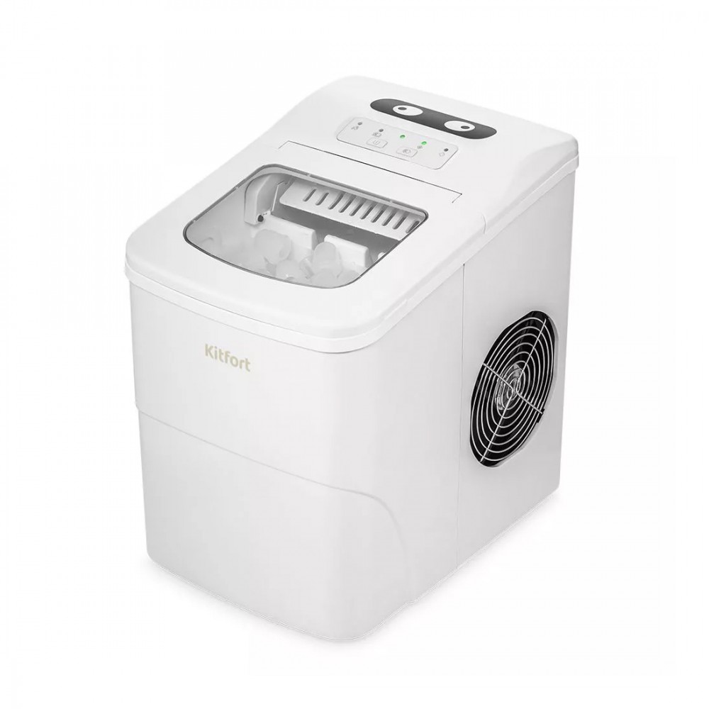 Льдогенератор, Kitfort, КТ-1812, Пальчиковый лед, Объем резервуара 2л, 12 кг/сутки, Климатический класс SN/N/ST/T, Изобутан R600a, Уровень шума до 43 дБ, Кнопочное управление, Белый