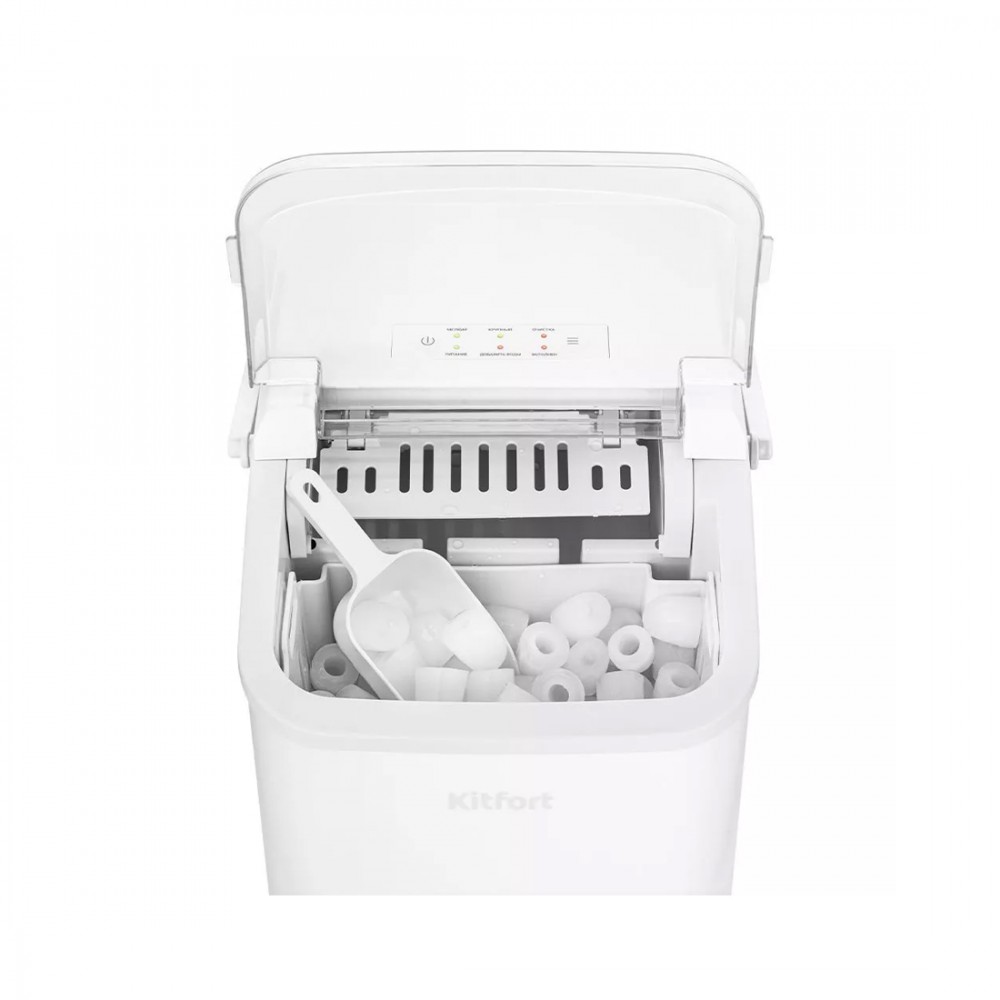 Льдогенератор, Kitfort, КТ-1831-1, Мощность -100 Вт, Ёмкость резервуара - 1,5 л, Климатический класс - SN/N/ST, Хладагент - изобутан R600a, Количество хладагента - 26 г, Уровень шума - 45 дБ , Цвет белый