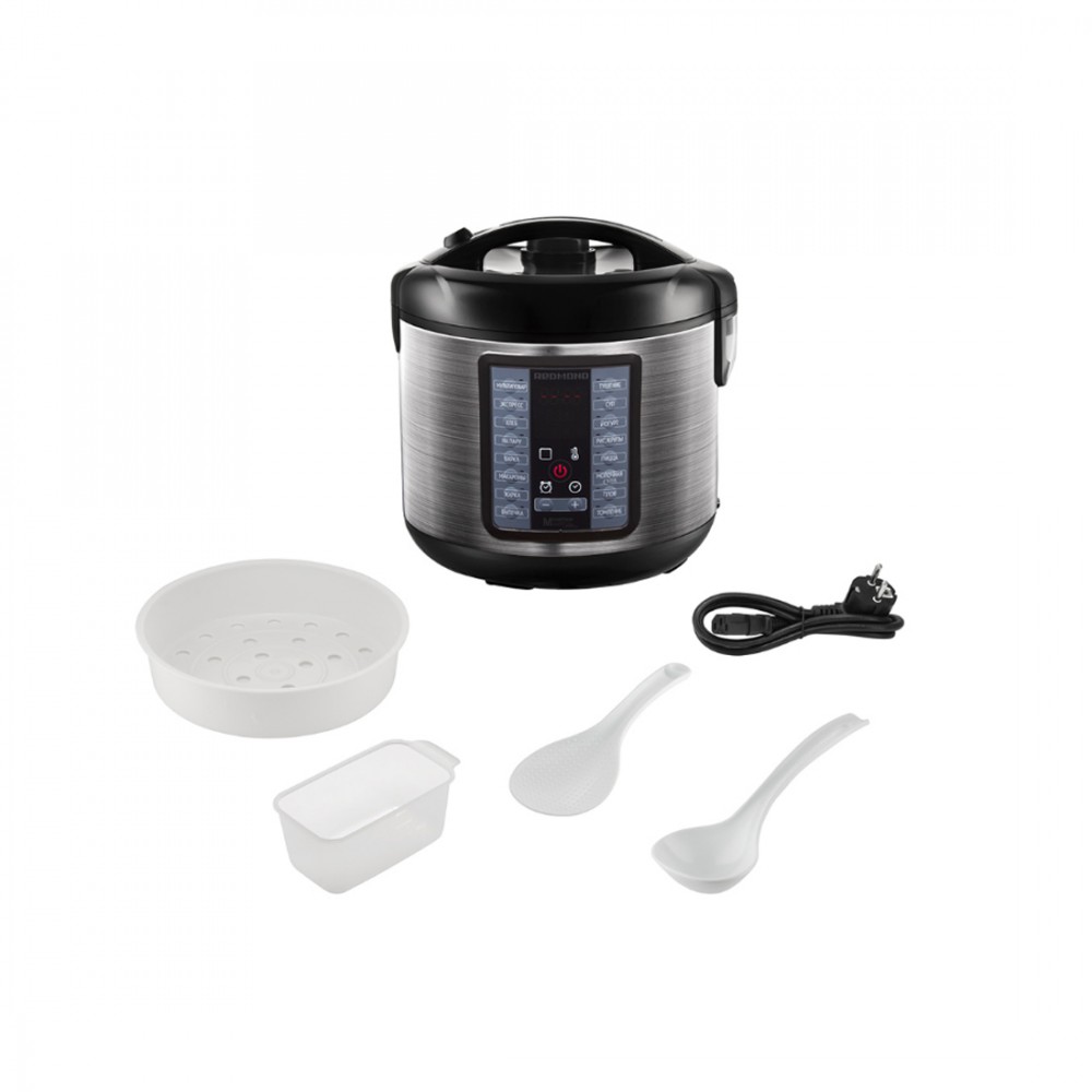 Мультиварка, Redmond, MC107, Мощность 860 Вт, Максимальный объем чаши 5 л, Полезный объем чаши 3.5 л, Материал корпуса металл, Материал чаши алюминий, Цвет Черный