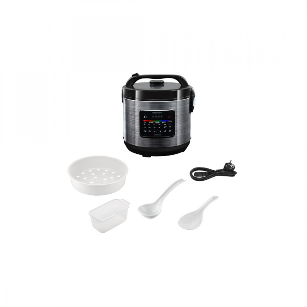 Мультиварка, Redmond, MC109, Объем чаши 5л, 14 автоматических программ, Сенсорное управление, Термодатчик, LED дисплей, Таймер, Автоподогрев, Мощность 860 Вт, Длинна шнура 1.2м, Черный/стальной