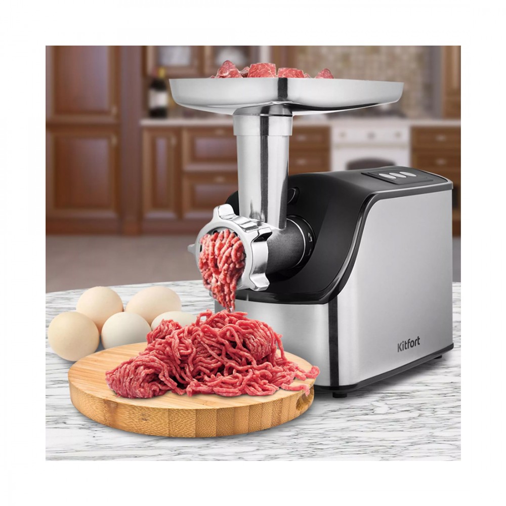 Мясорубка, Kitfort, КТ-2104, Производительность 2.3 кг/мин, 2 скорости, 8 насадок, Уровень шума 82 дБ, Мощность 1800 Вт, Стальной/Черный