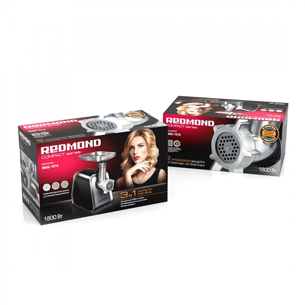 Мясорубка, Redmond, RMG-1215, 1800 Вт, Производительность 2 кг/мин, Количество дисков для фарша 3, Диаметр отверстий диска 3 мм/4,5 мм/8 мм, Насадки для кеббе и колбасок, Черный