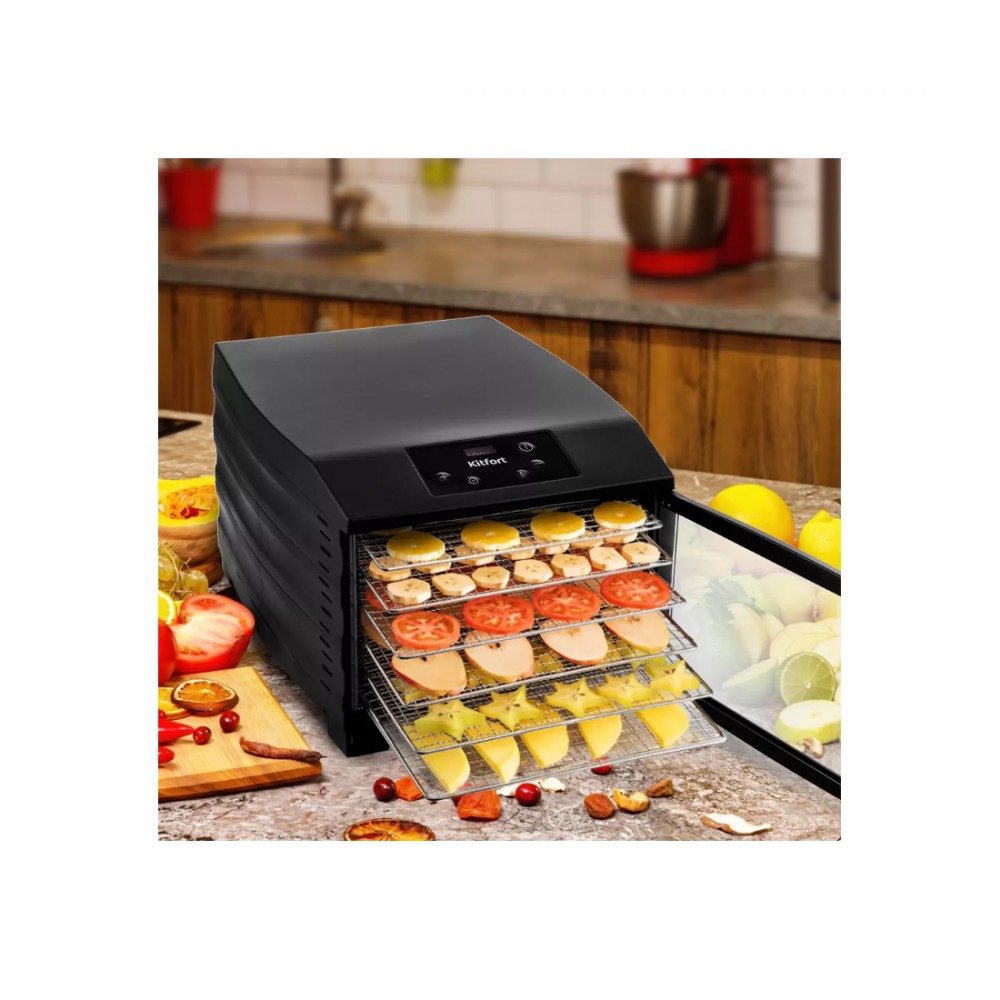 Сушилка для овощей и фруктов, Kitfort, КТ-1920, Количество поддонов 6, Мощность 800 Вт, Обдув горизонтальный, Цвет черный