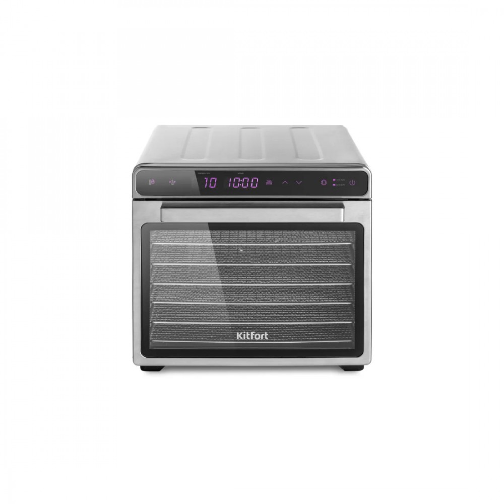 Сушилка для овощей и фруктов, Kitfort, КТ-1925, 3 режима сушки, Сенсорное управление, Температура 35-75°C, 14/7 поддонов/сеток, Таймер, Мощность 650 Вт, Стальной