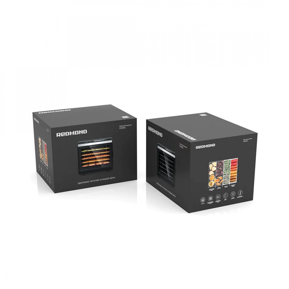 Сушилка для овощей и фруктов, Redmond, FD1105, Конвективная, Объем 25л, 12 поддонов, Температура нагрева 35-70°C, Таймер, Сенсорное управление, Приготовление йогурта, Приготовление пастилы, Мощность 500 Вт, Длина шнура 1.3м, Графитовый