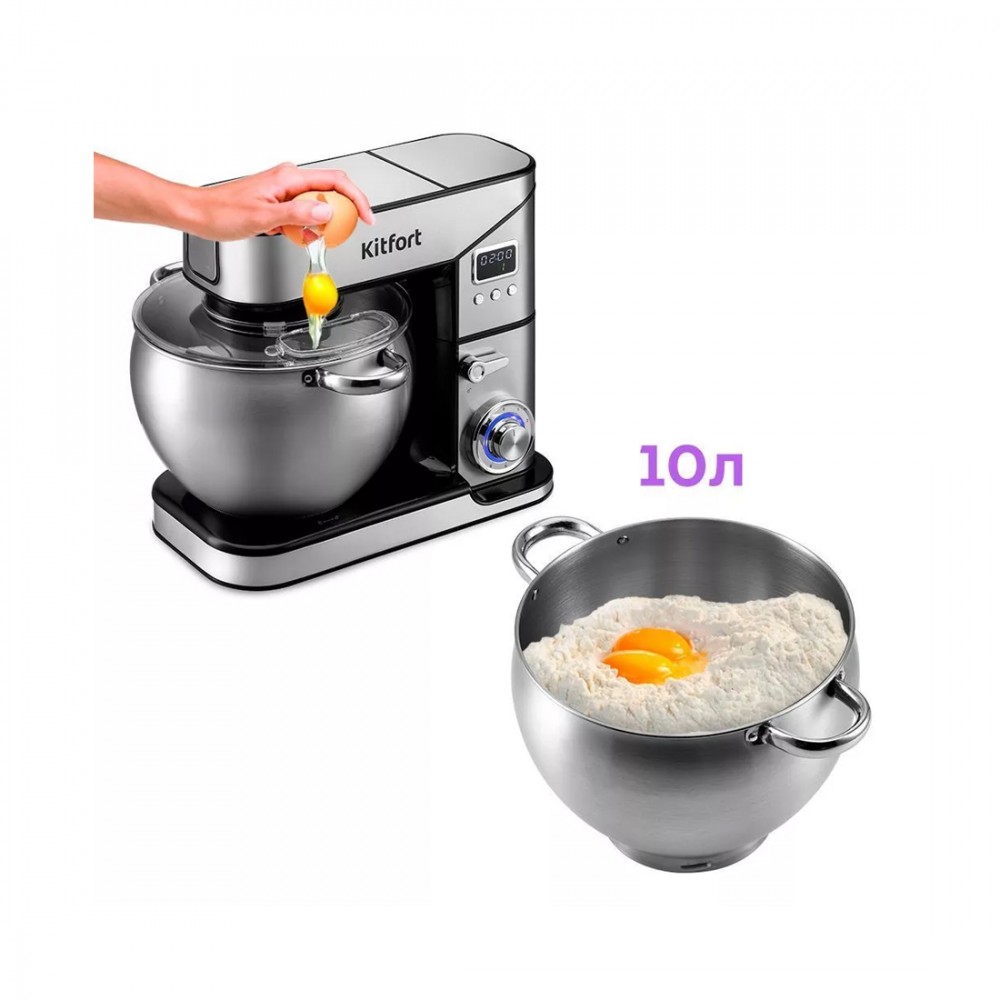 Планетарный миксер, Kitfort, КТ-3413, Максимальная мощность 2000 Вт, Материал корпуса металл, пластик, Материал чаши нержавеющая сталь, Емкость чаши 10 л