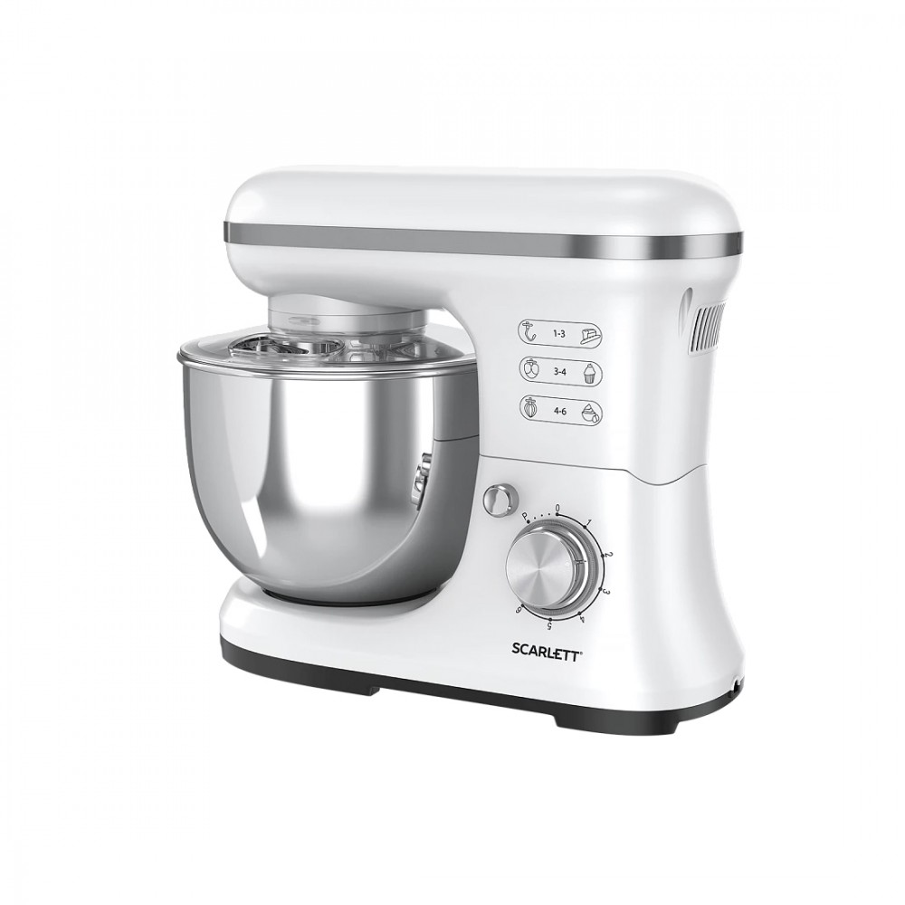 Планетарный миксер, Scarlett, SC-SM10S50, Мощность 1400 Вт, 6 скоростных режимов, Импульсный режим, Съемная чаша для смешивания, Цвет белый