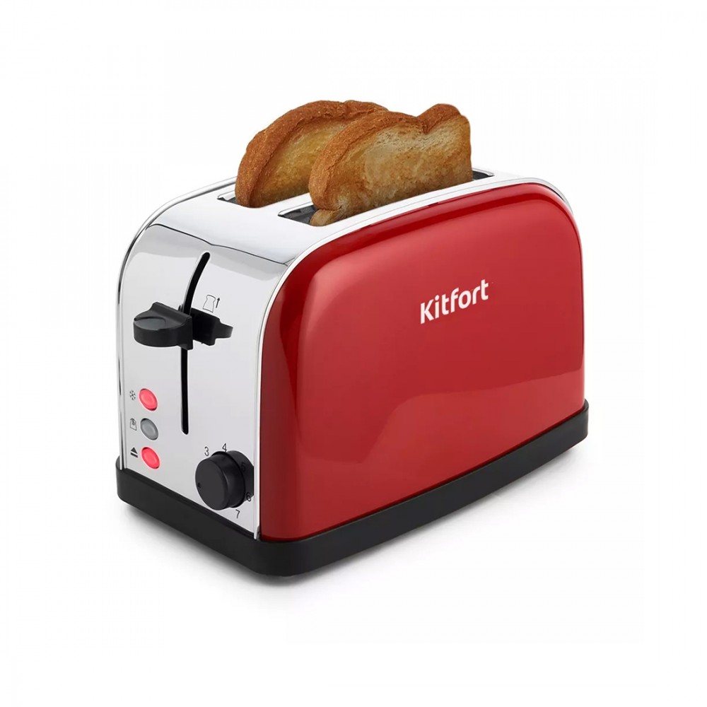 Тостер, Kitfort, КТ-2014-3, красный, Мощность 720-850Вт, 2 слота для тостов, 7 степеней поджаривания тостов, Металл, Механический тип управления, Подогрев, Размораживание, Красный