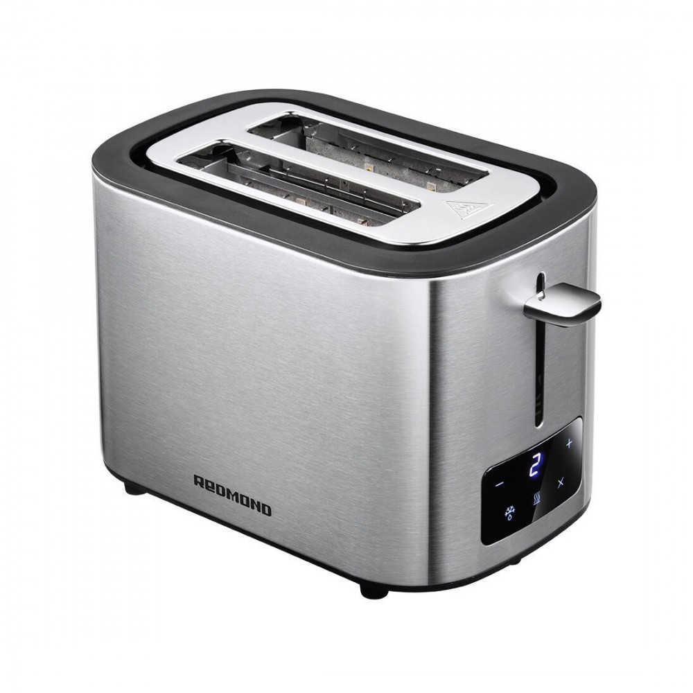 Тостер, Redmond, T906, 2 отделения длс тостов, 6 степеней обжаривания, Функция разморозки и подогрева, Автоматическое центрирование тостов, Автоматический выброс тостов, Мощность 750 Вт, Длина шнура 0.75м, Серый/металл
