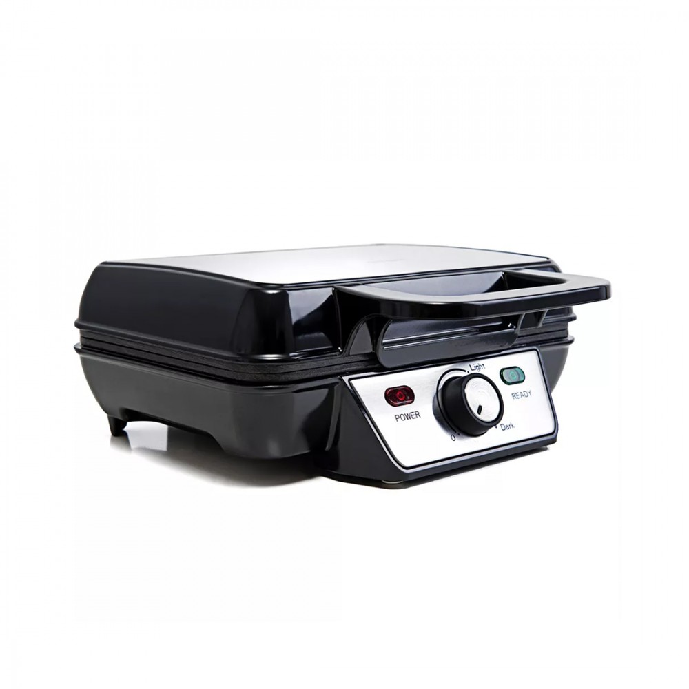 Вафельница для бельгийских вафель, Kitfort, КТ-1620, Антипригарное покрытие, Размер пластин 24 х 20 см, Несъёмные панелиТермоизолированная ручка, Длина шнура 0.7м, Мощность 1000 Вт, Стальной/чёрный