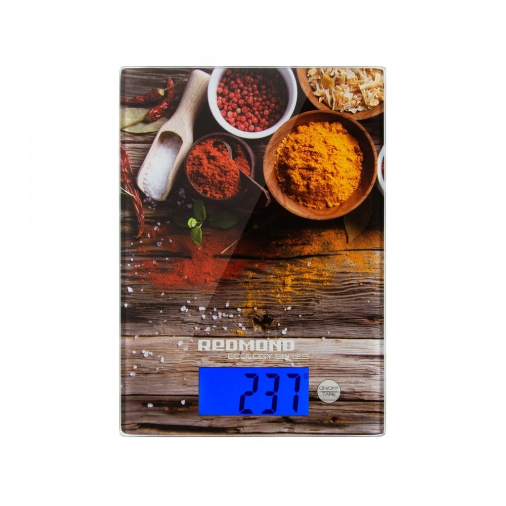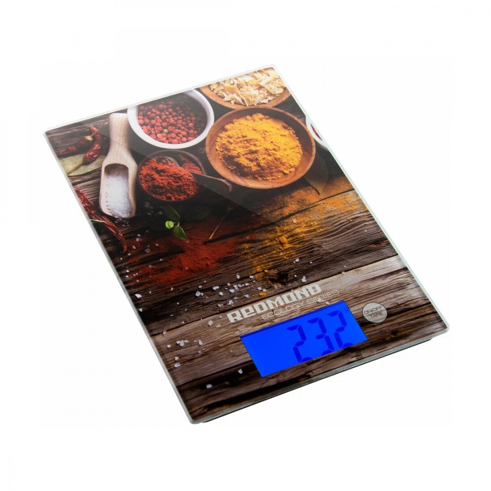 Весы кухонные, Redmond, RS-736, Электронный тип управления, Дисплей, Питание от батарей, Тип батарей CR2032, Автоотключение, Автообнуление, Индикация перегрузки, Рисунок специи