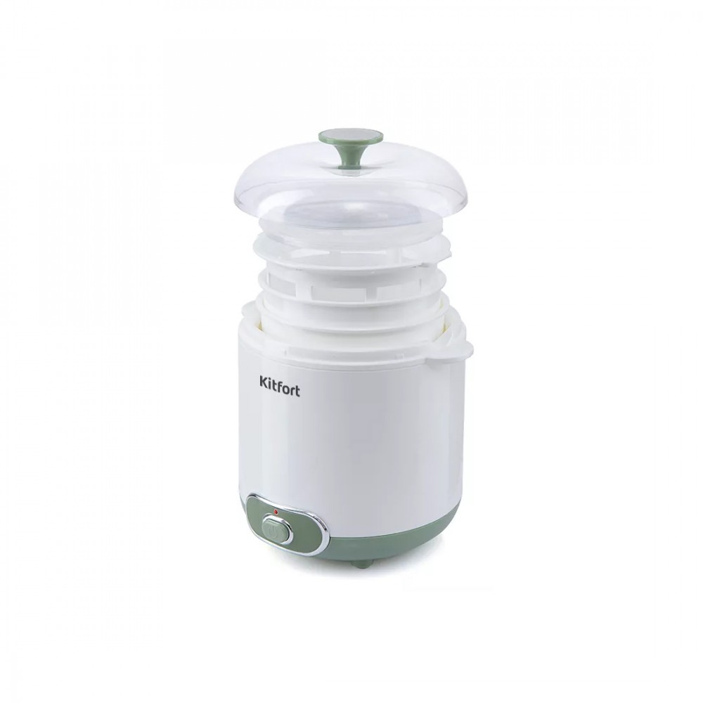Йогуртница, Kitfort, КТ-2005, Мощность 20 Вт, Механическое управление, Ёмкость 1.5 л, Время приготовления 6-10 часов, Рабочая температура 42±3°С, Белый, Зеленый