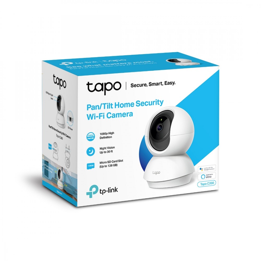 IP-камера, TP-Link, Tapo C200, CMOS-матрица 1/2.9\", ИК-подсветка - до 9 м, Функция день/ночь, 2.4 мега., Объектив: 4 мм, H.264, 1080p, 9,0В/0,6А.