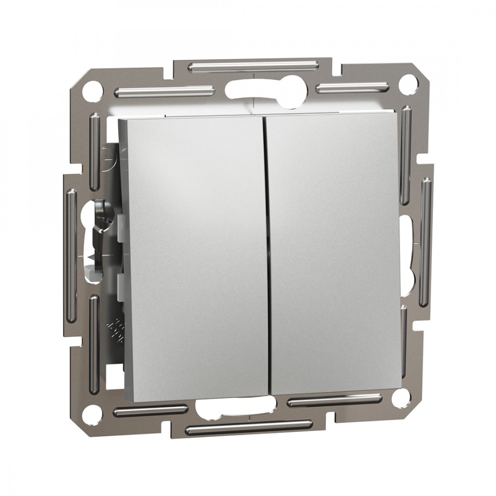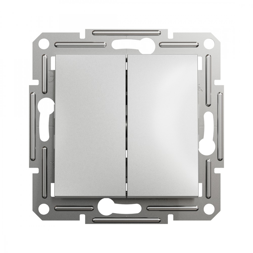Выключатель двухклавишный SE EPH0300161 Asfora 10AX мех.быстрозажимной алюминий