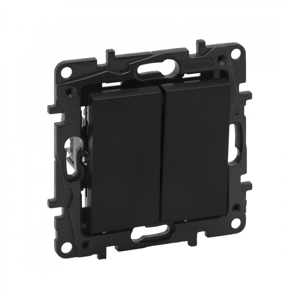 Переключатель двухклавишный крестовой, Legrand Niloe Step, 863508, 10А авт.кл. Чёрный
