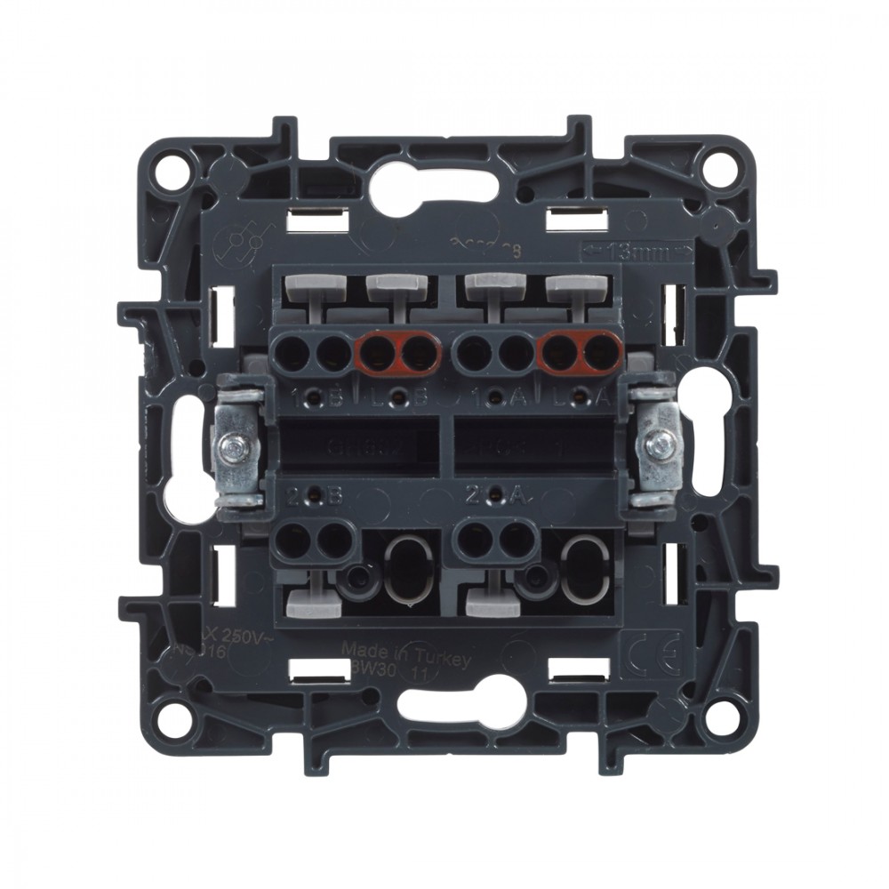 Технические характеристики Переключатель двухклавишный крестовой Niloe Step 10А авт.клеммы Чёрный