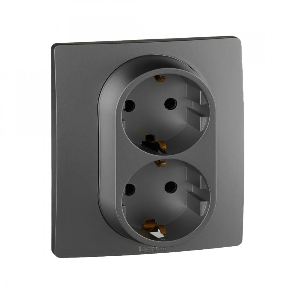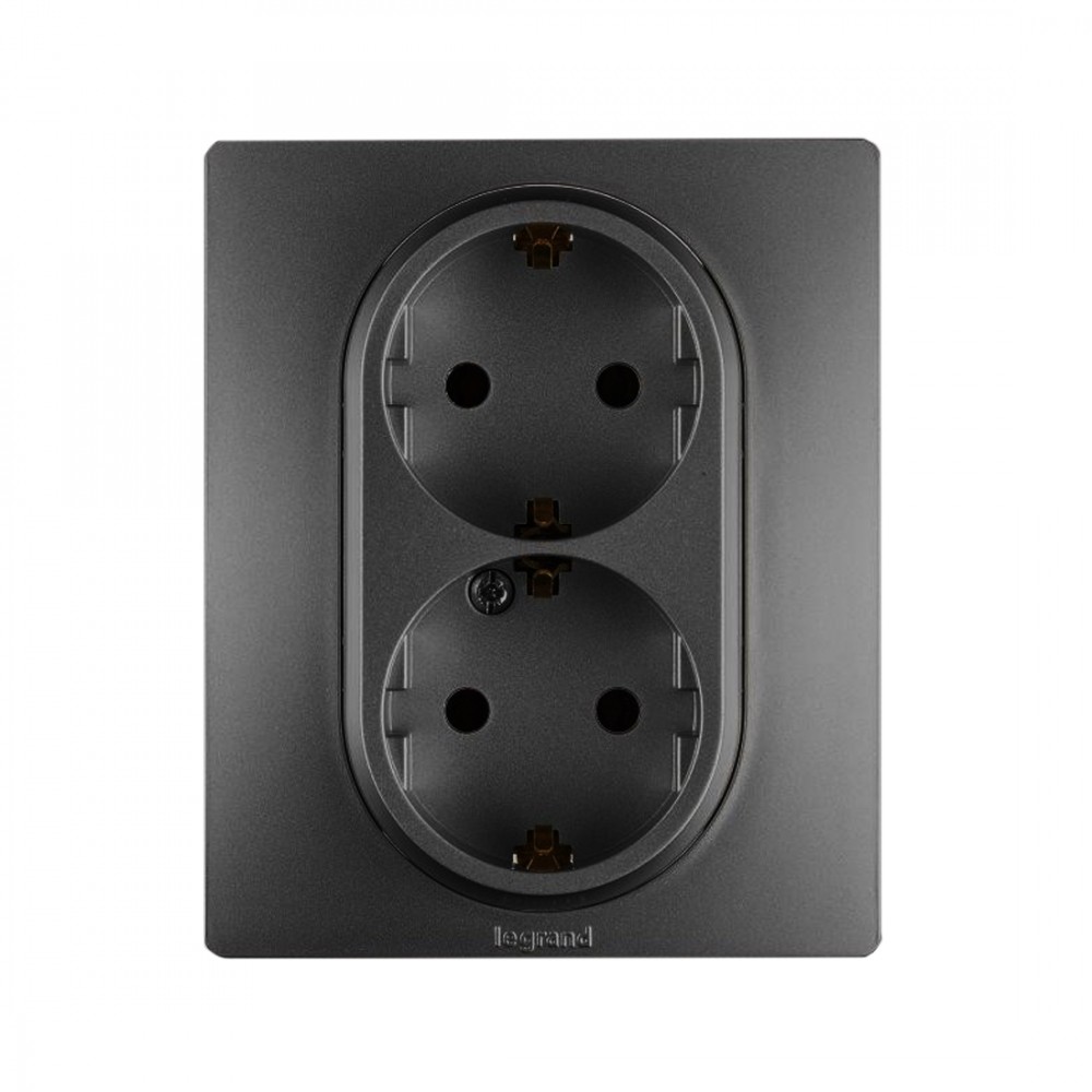 Розетка двойная 2х2К+З, Legrand Niloe Step, 863522, 16А 250 В с з/ш авт. кл. Чёрный