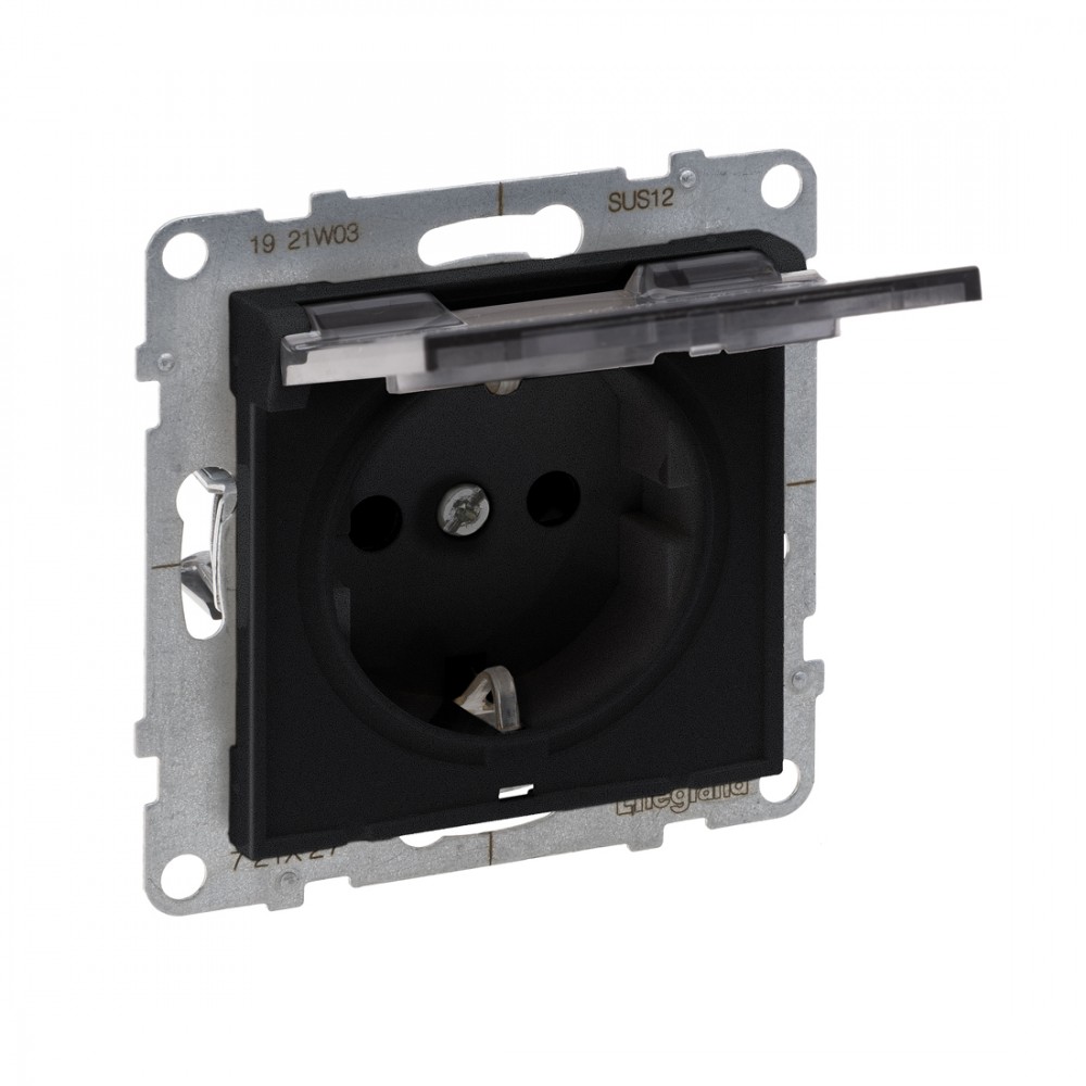Розетка 2К+З, Legrand Suno, 721427, 16А 250В с з/ш с крышкой IP21 безвинт.зажим Антрацит