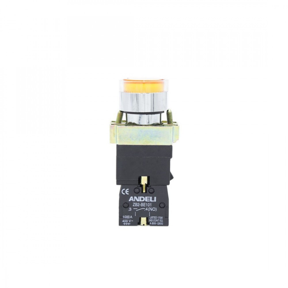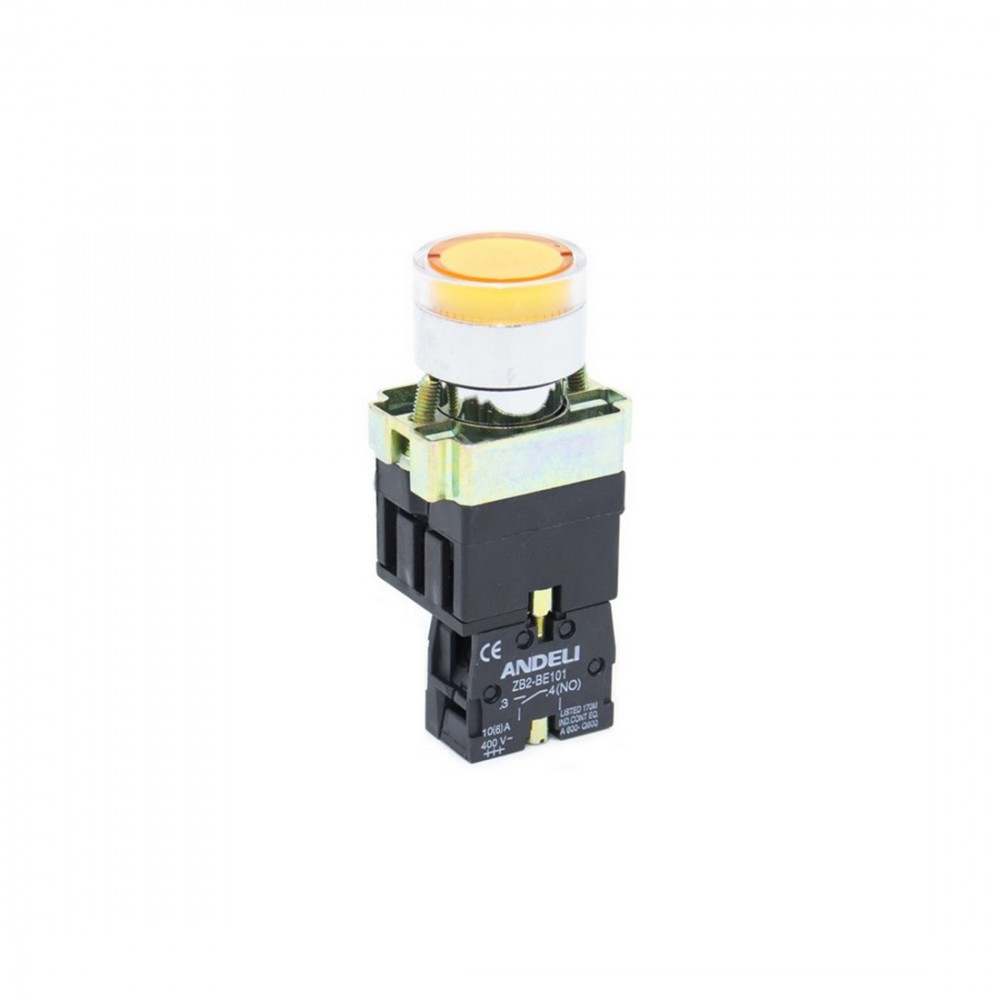 Кнопка открытая, ANDELI, XB2-BW3571, (жёлтая с подсветкой)