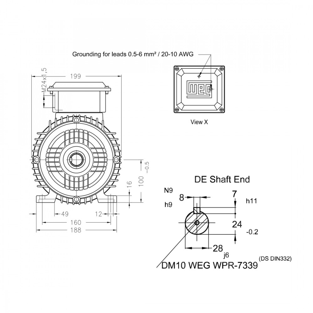 Технические характеристики Асинхронный электродвигатель WEG 12310536 AM W20 -100L 2.2 кВт 4P B3T 220-460 В 50 Гц