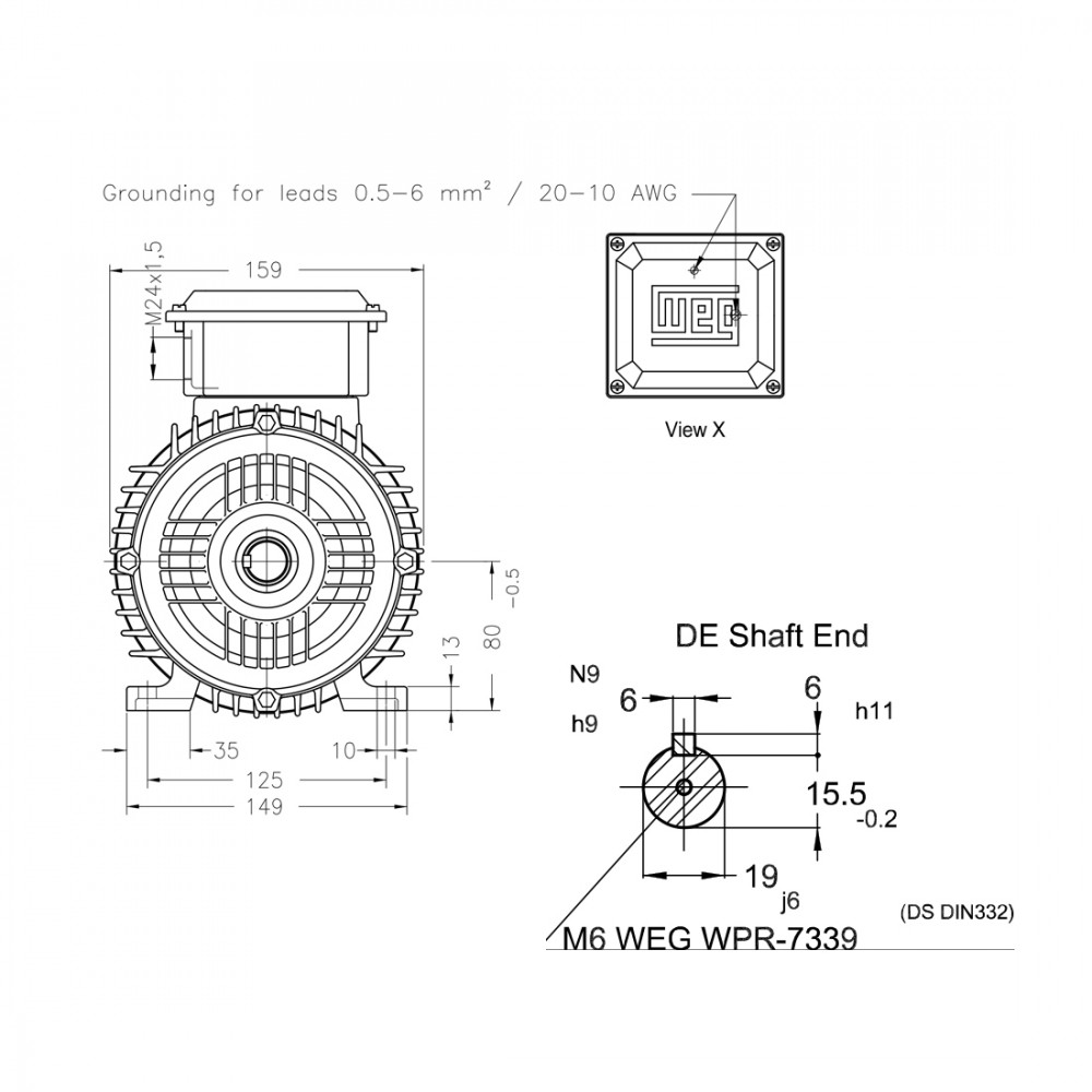 Технические характеристики Асинхронный электродвигатель WEG 12312786 W20 80 0,75 кВт 4P B3T 220-460 В 50 Гц