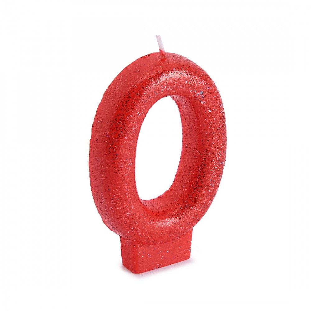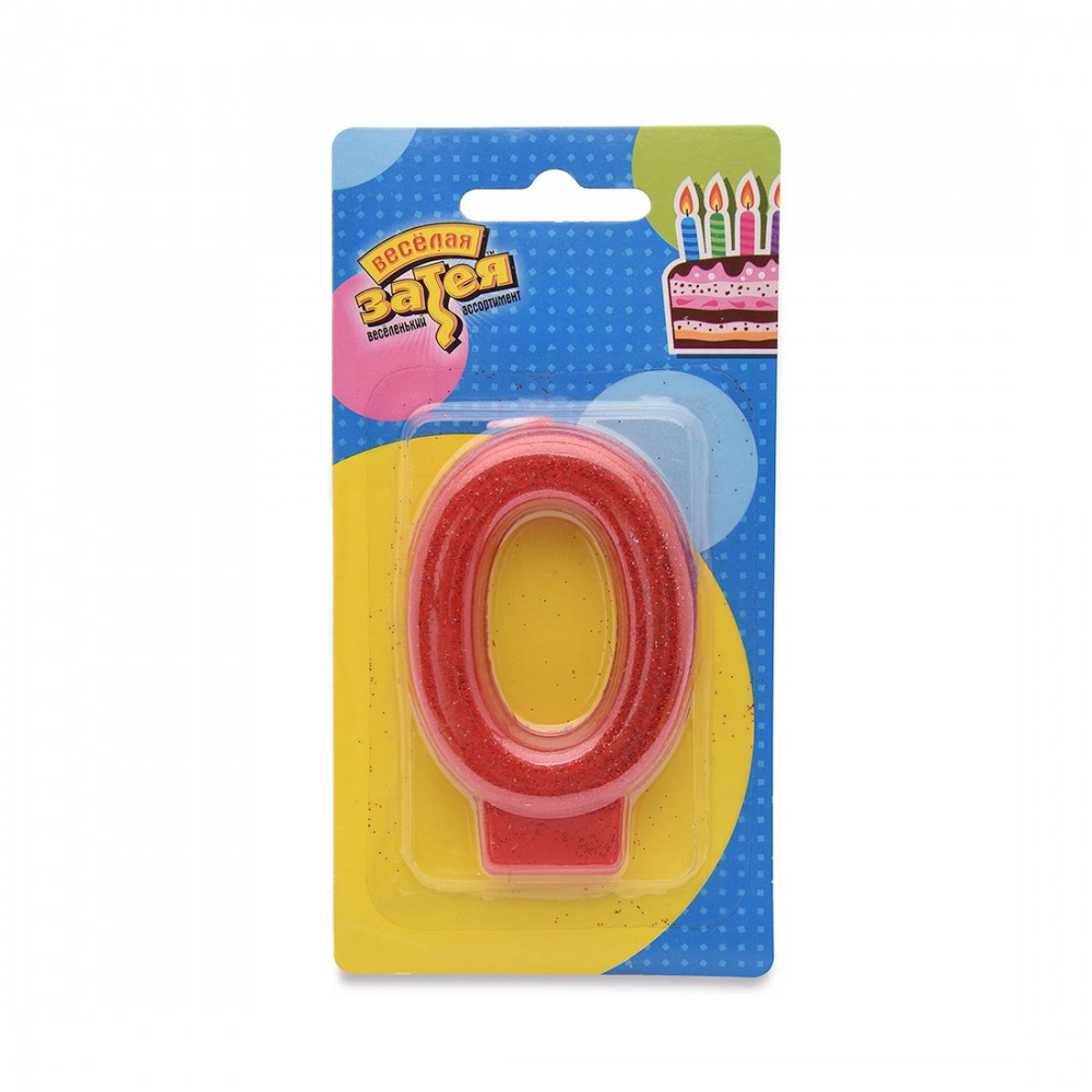 Свеча в форме цифры 0, ВЕСЁЛАЯ ЗАТЕЯ, 1502-2143, Цифра \"0\", Блестящая, Высота 7.6см, Стеарин, Красный металлик, Блистер