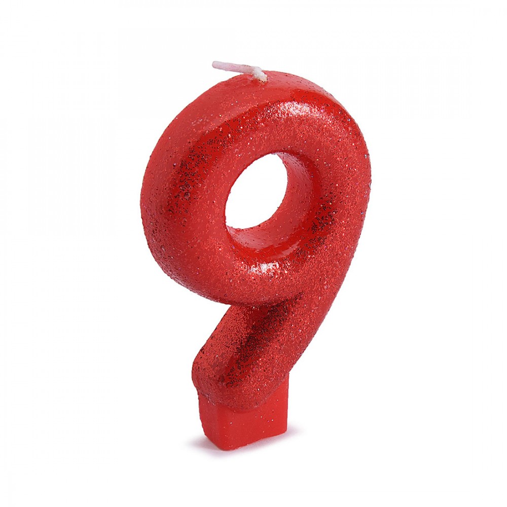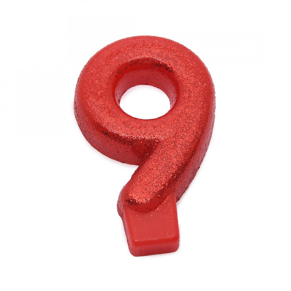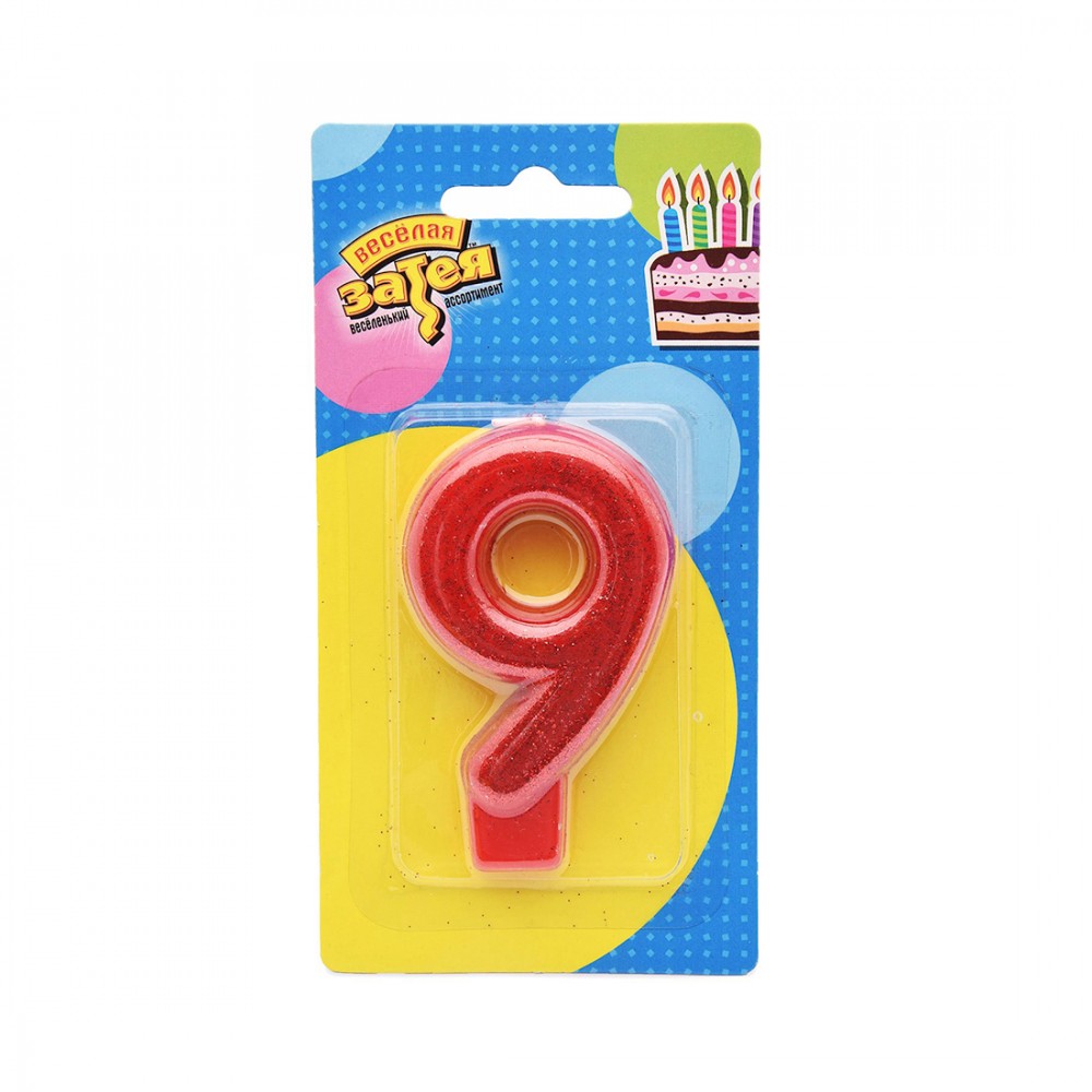 Свеча в форме цифры 9 ВЕСЁЛАЯ ЗАТЕЯ, 1502-2156, Цифра \"9\", Блестящая, Высота 7.6см, Стеарин, Красный металлик, Блистер