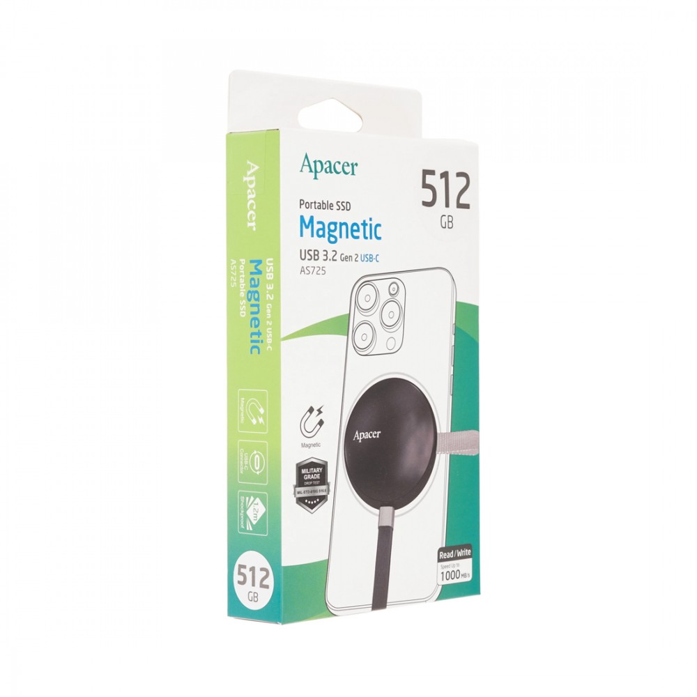 Внешний SSD диск, Apacer, AS725, AP512GAS725B-1, 512GB, USB-C, Черный